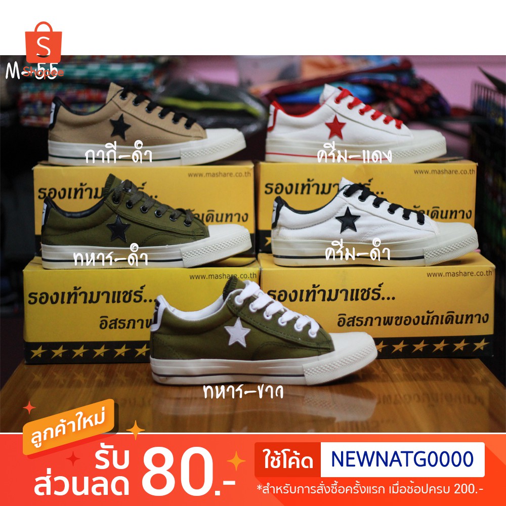 ผ้าใบ รองเท้า M55 ยี่ห้อมาแชร์ Mashare ทหารดำ ทหารขาว กากีดำ ครีมดำ ครีมแดง ครีมตาล