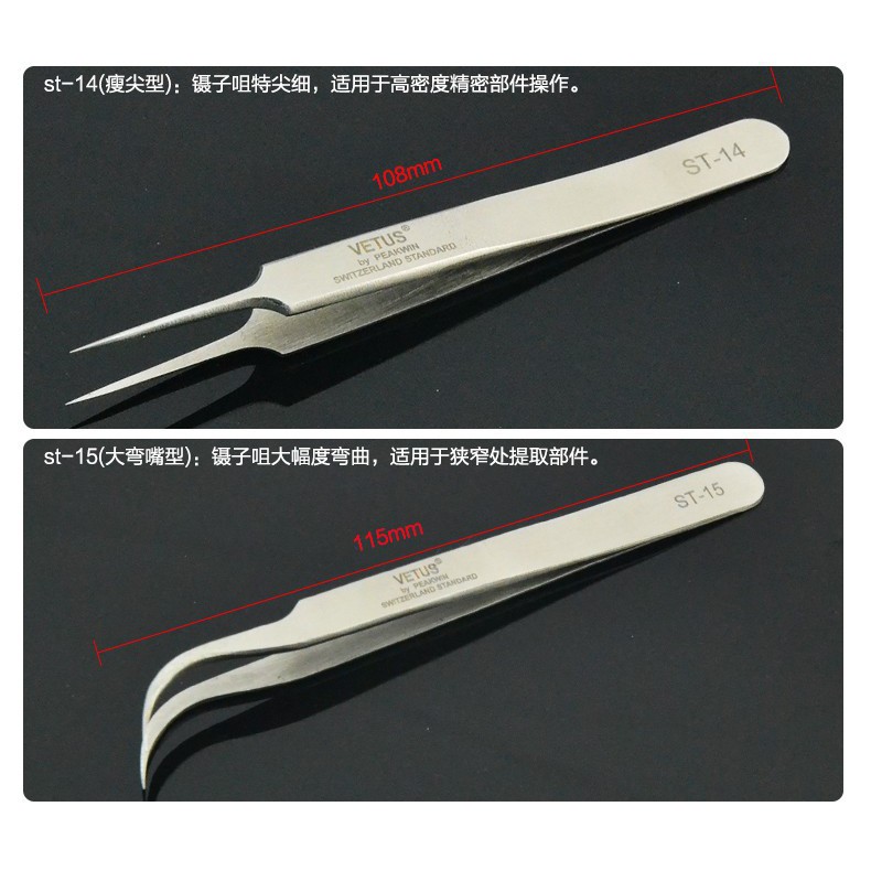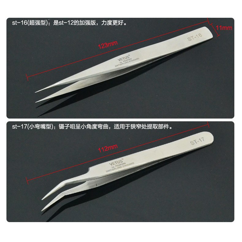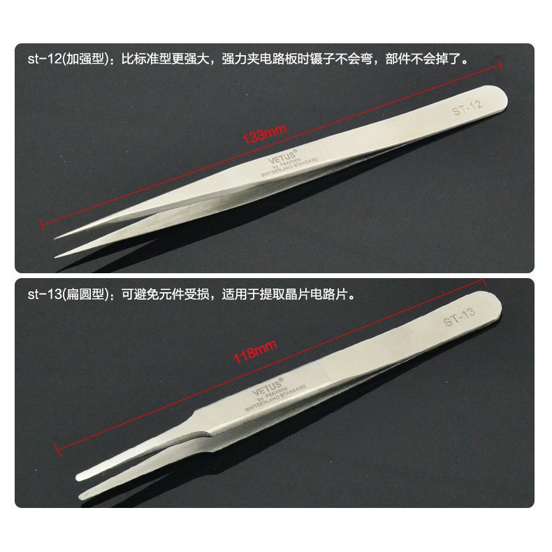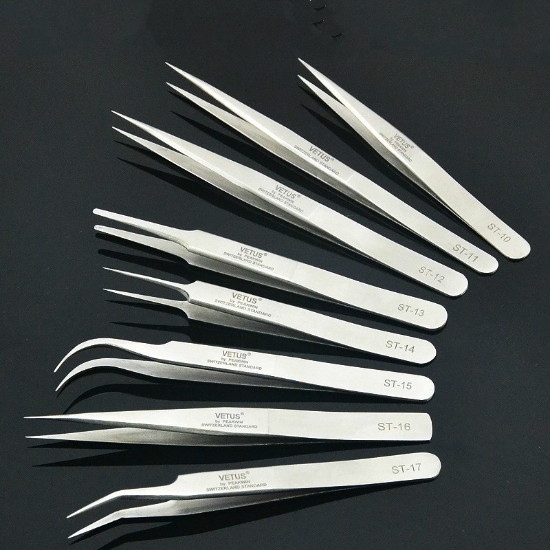 VETUS แหนบสเตนเลส ป้องกันไฟฟ้าสถิต สำหรับหนีบขนตาปลอมและทำงานช่าง