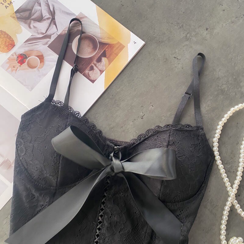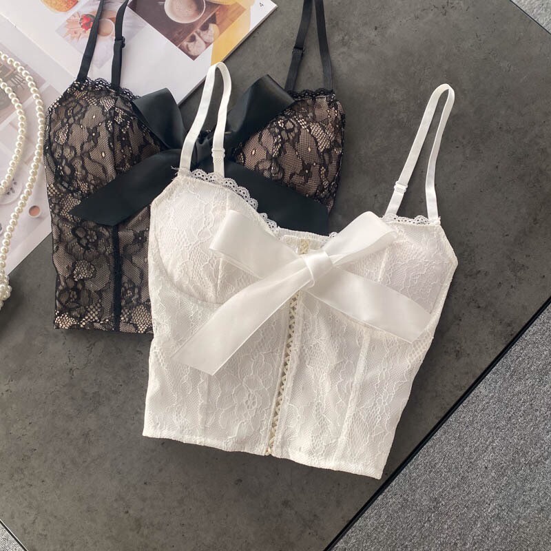 🧸BRA-996🧸เสื้อสายเดี่ยวรัดรูปเซ็กซี่ มีฟองน้ำ ดีเทลแต่งโบว์หน้าอก