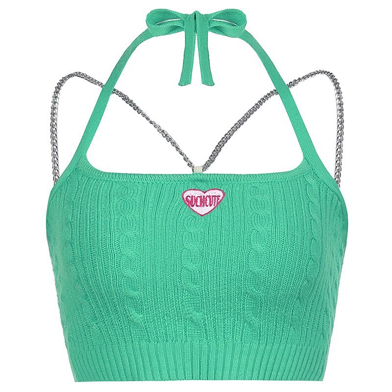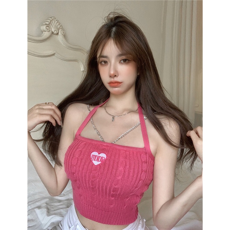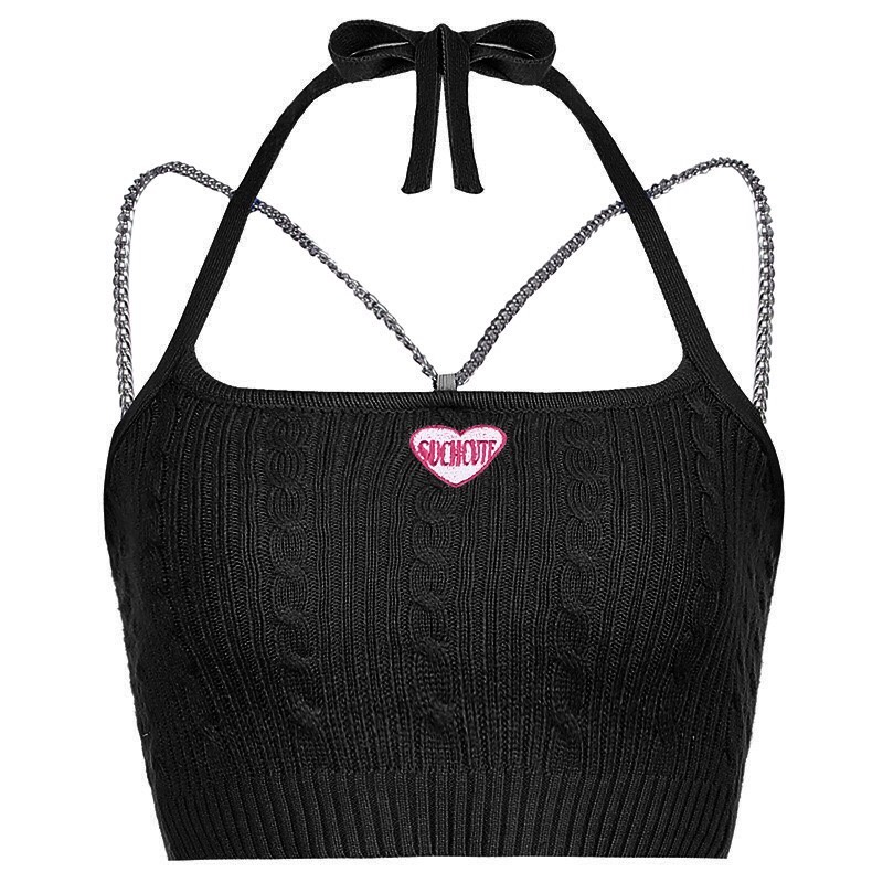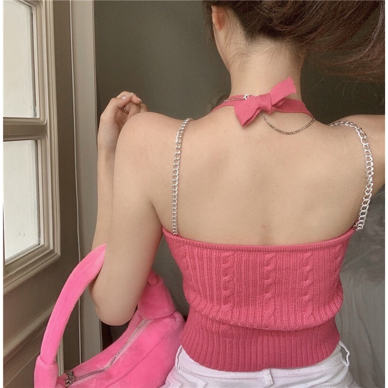 ❤B-065❤พร้อมส่ง‼️ Chain tank top เสื้อสายเดี่ยวไหมพรม