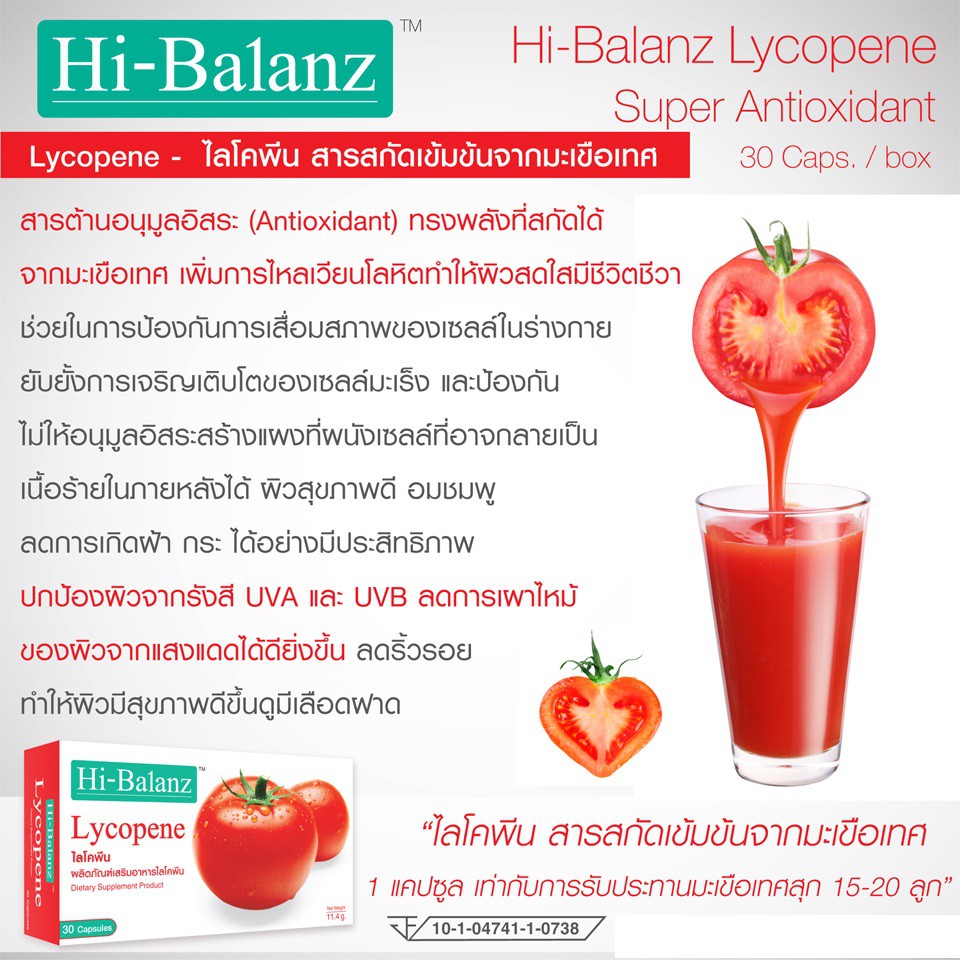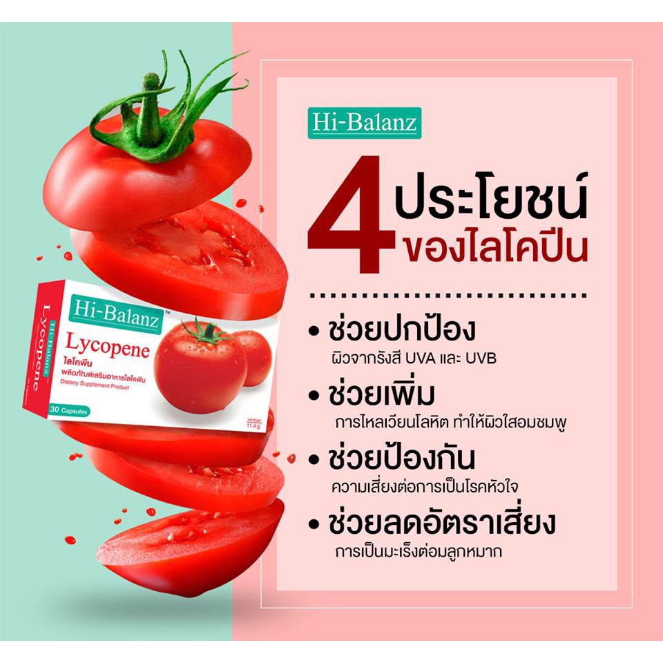 [ลด 15% โค้ด "MFSHJ5"] Hi-Balanz Lycopene ไฮบาลานซ์ ไลโคพีน มะเขือเทศ ผิวใส 30 แคปซูล 1 กล่อง