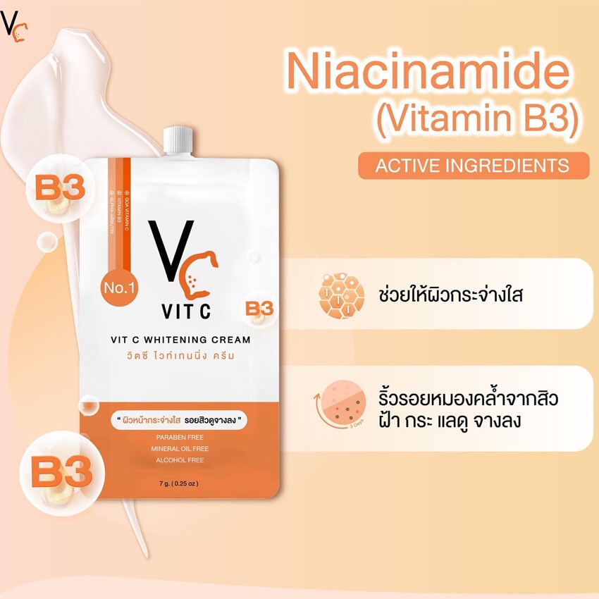 Vit C Bio face Serum (10 ml.) / Whitening Cream 7 g./ VC Vit C Acne Foam (50 g.) /Pure Power Shot (14 ซอง) /Mask (33 ml)