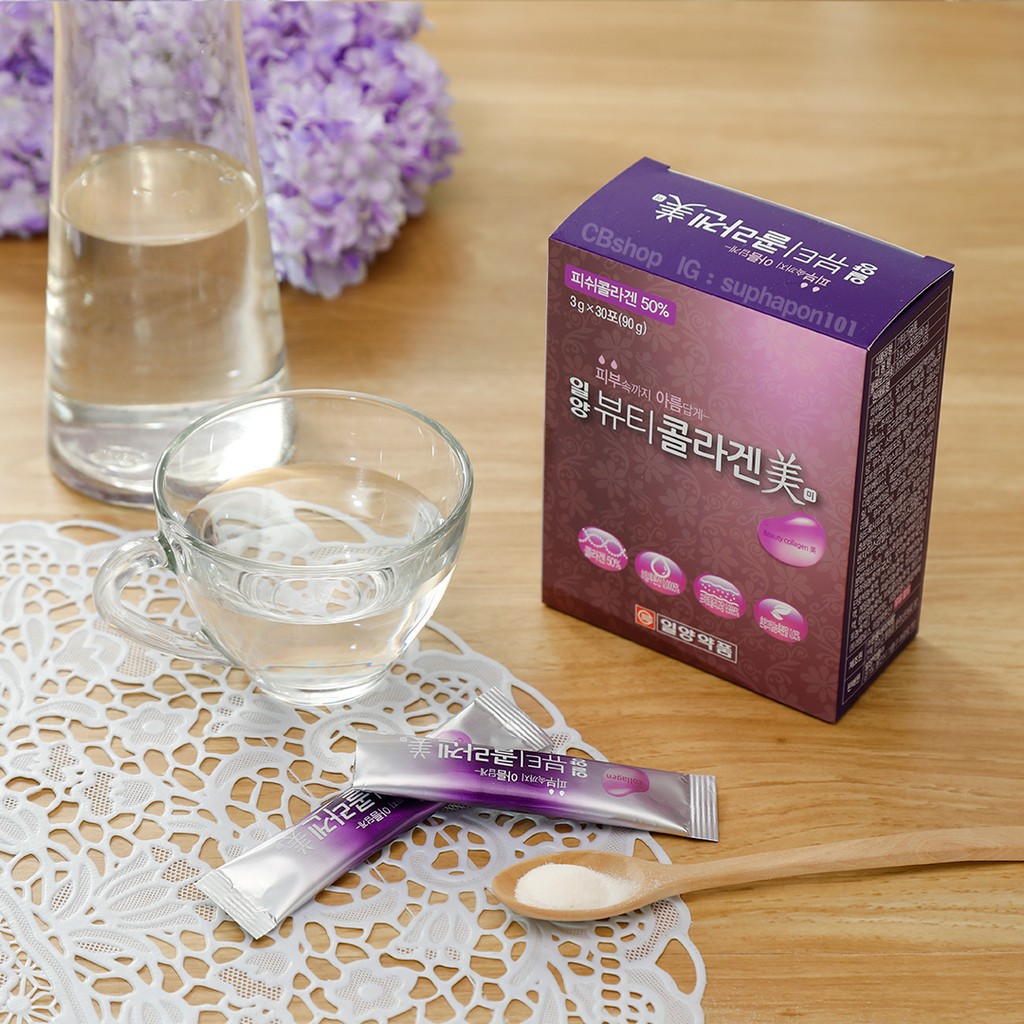 [ฉลากไทย] คอลลาเจนเกาหลี Ilyang Beauty Collagen คอลลาเจนกล่องม่วง [30 ซอง]