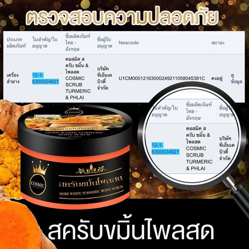 สครับขมิ้นไพลสด Cosmic สกัดจากสมุนไพรแท้ 100% 370g