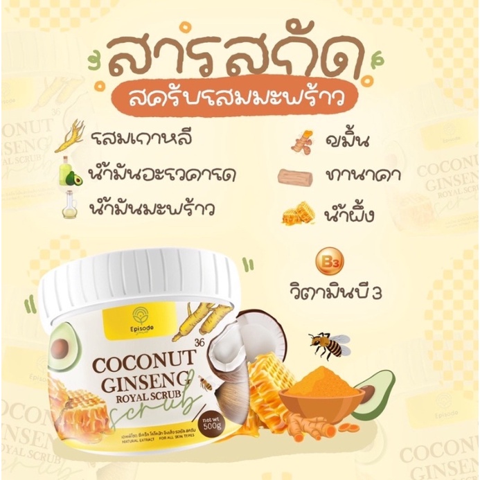 Coconut Ginseng Cream ครีมโสมมะพร้าว โสมมะพร้าวกลูต้า โสมมะพร้าวคอลลาเจน/Coconut Ginseng Royal Scrub สครับโสมมะพร้าว