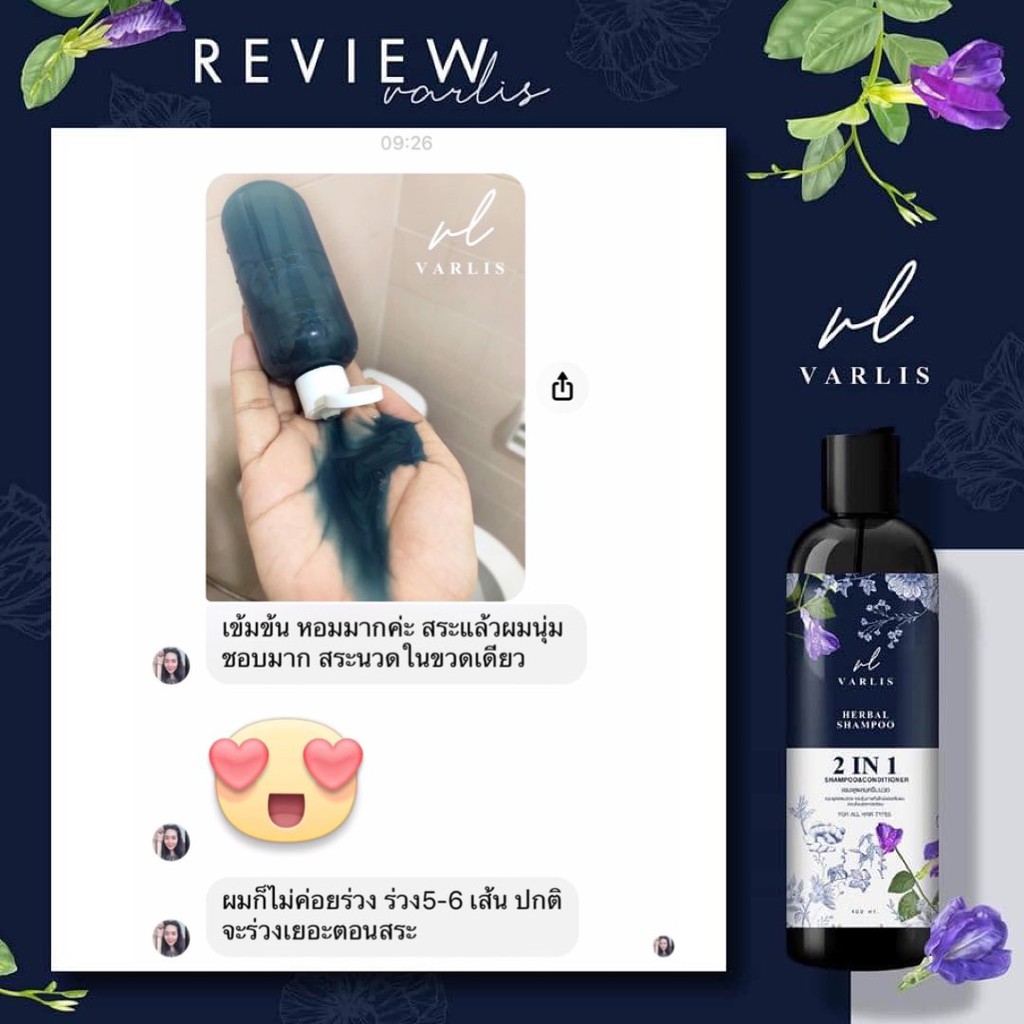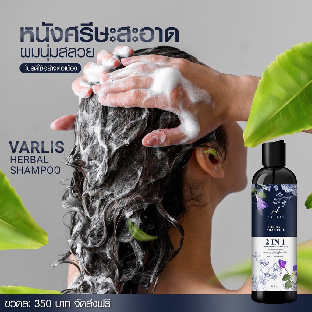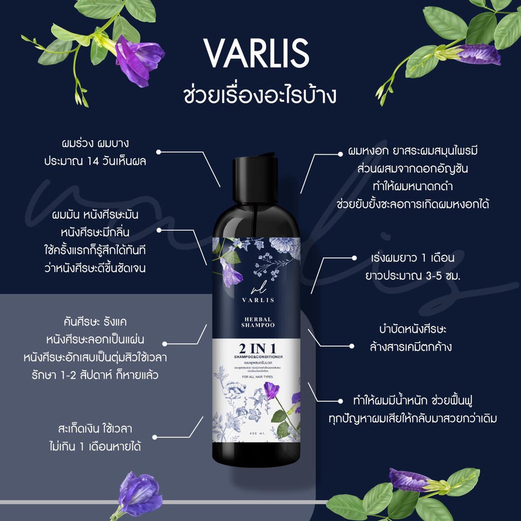 Varlis แชมพูวาริส แชมพูสมุนไพร 2 in 1 ออแกนิค แชมพูผสมครีมนวด ยาสระผม ขนาด 400 ml.