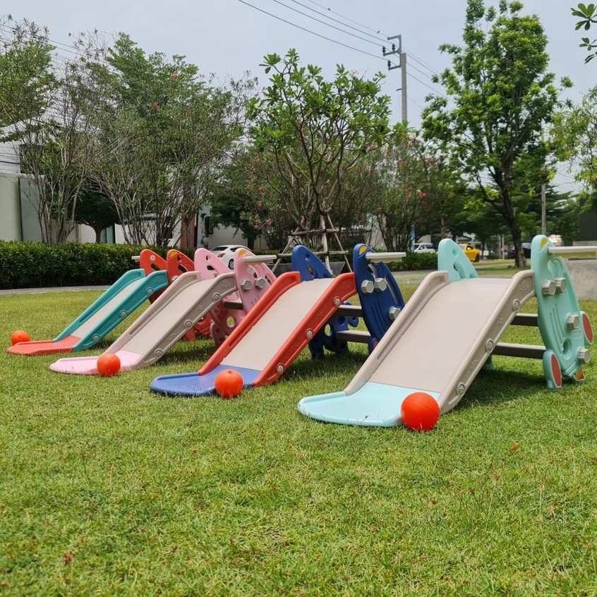สไลเดอร์เด็ก สไลเดอร์ 2in1 พร้อมแป้นบาสและลูกบาส มีขอบกันตก แข็งแรงรับน้ำหนักได้ดี พับเก็บได้ YBC-18/YBC-22/YBC-20/HH-05