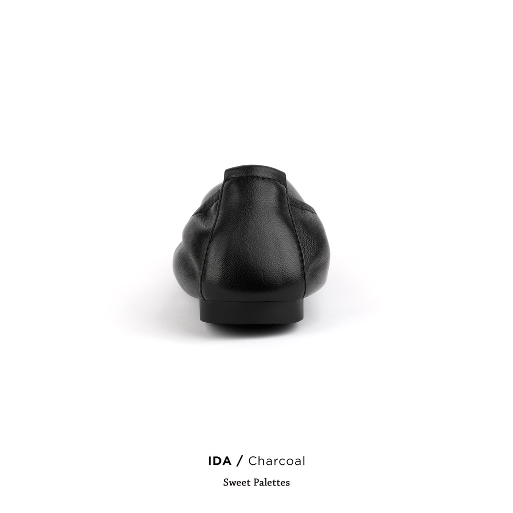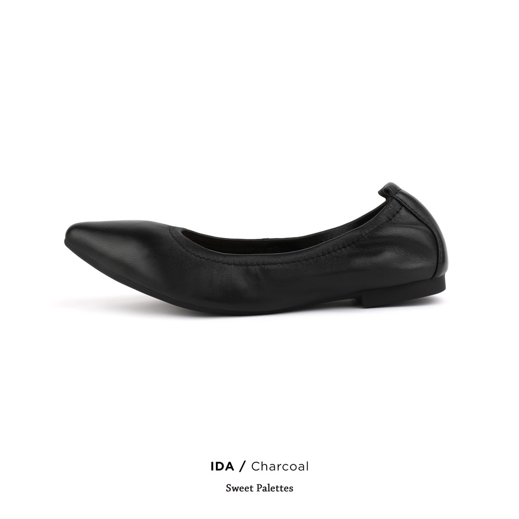 Sweet Palettes รองเท้าหนังแกะ Ida Charcoal สีดำ