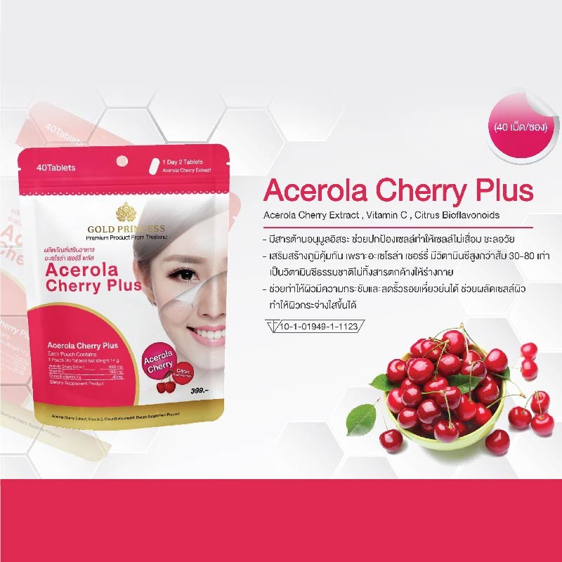 Gold Princess Acerola Cherry Plus (อะเซโรล่า เชอร์รี่ พลัส บรรจุ 40 เม็ด)