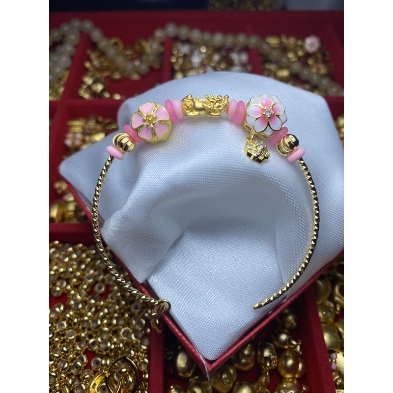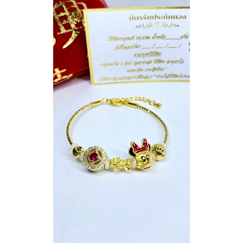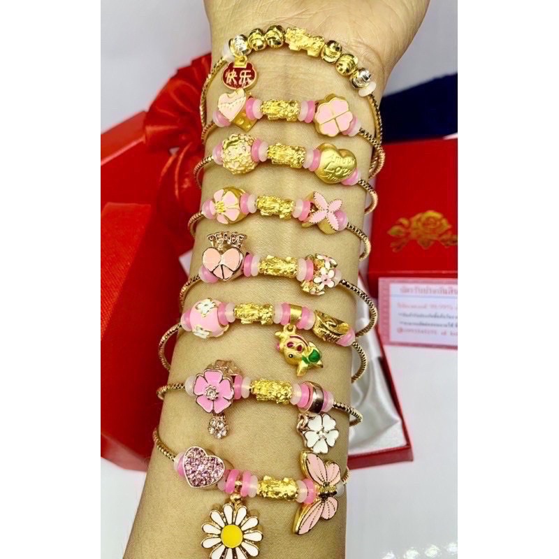 ข้อมือปี่เซียะทองแท้99.99%+แพนโดร่า พร้อมใบรับประกัน พร้อมของแถมทางร้าน น้ำหนัก0.1-0.15 กรัม(A003)