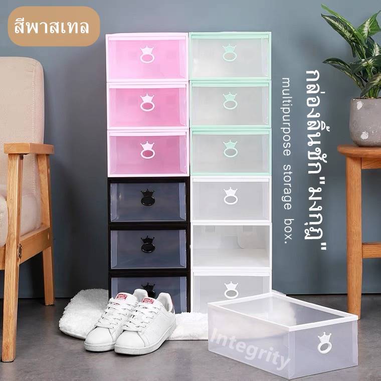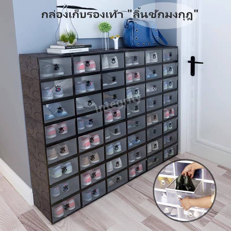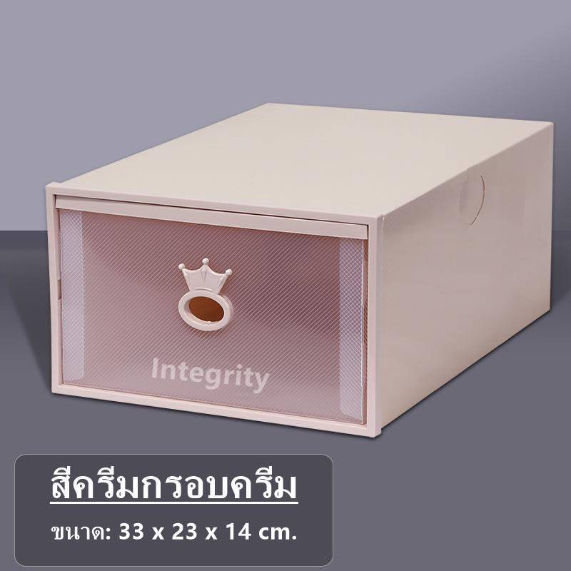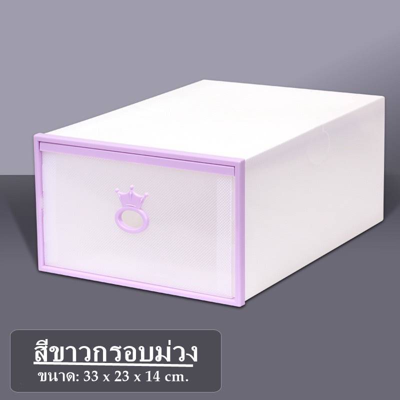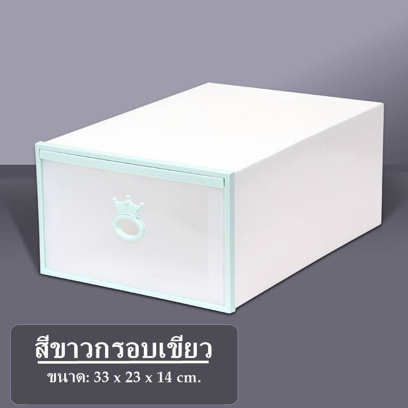 กล่องใส่รองเท้าแบบลิ้นชัก ตัวจับเป็นรูปมงกุฎ สามารถประยุกต์ใส่ของได้หลากหลาย