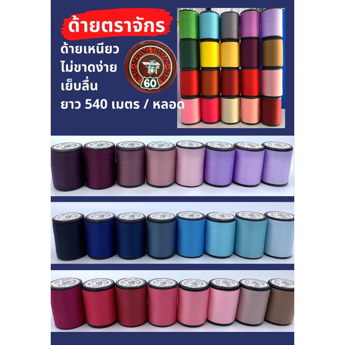 ด้ายเย็บผ้า ด้ายเย็บผ้าหลอดเล็ก ด้ายตราจักร 540 เมตร เลือกสีเองได้ (1 โหล = 12 หลอด)