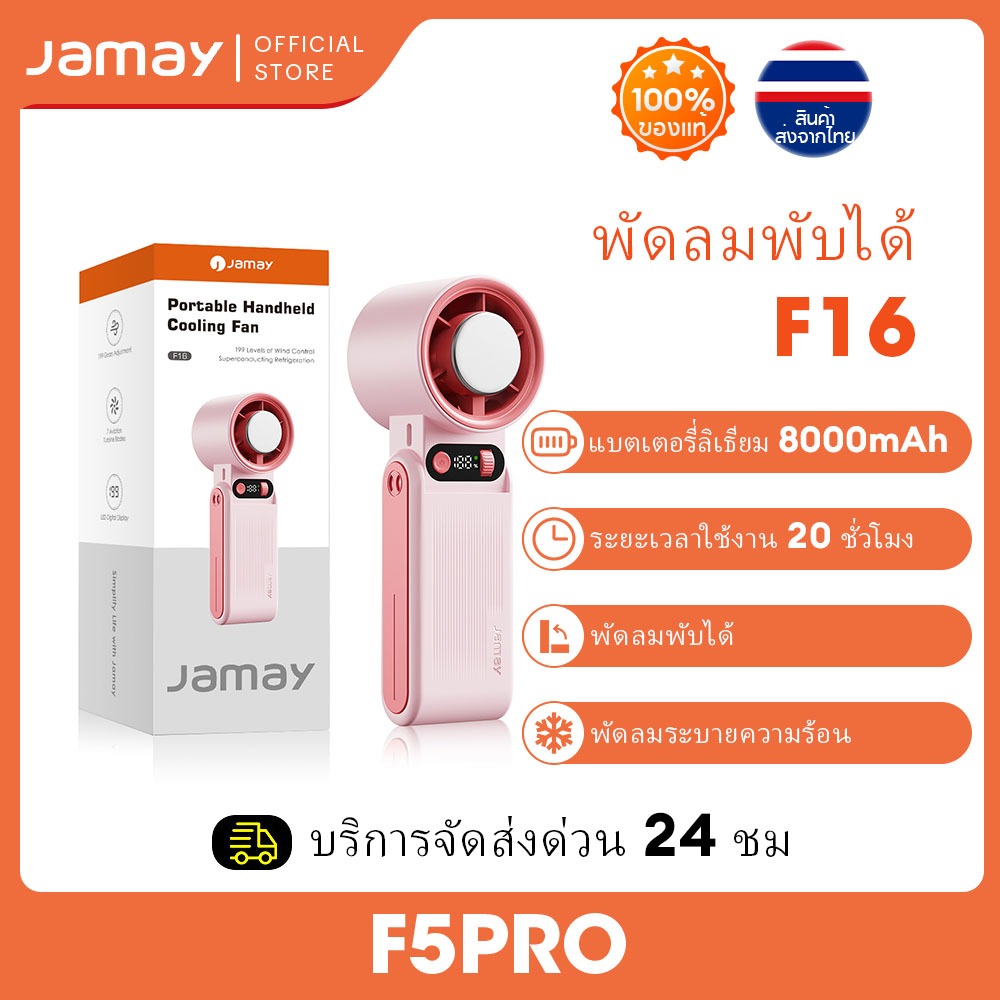 JAMAY พัดลมขนาดเล็ก แบบพกพา 8000mAh พัดลม USB พับได้ พร้อม 199 เกียร์ เวลาใช้งาน 30ชม ลมแรง เงียบ พัดลมมือถือ F5PRO