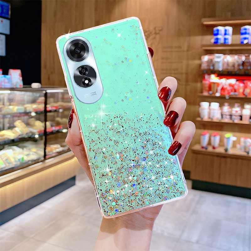 ปลอกoppo A3X A3 A60 A79 A18 A38 A98 A58 A17 A17K A78 4G 5G Reno 12 Pro 11F 11F 11 Pro 10 Pro + ฝาครอบBling ClearสีดําสีเขียวสีชมพูStar Space TPUปลอก
