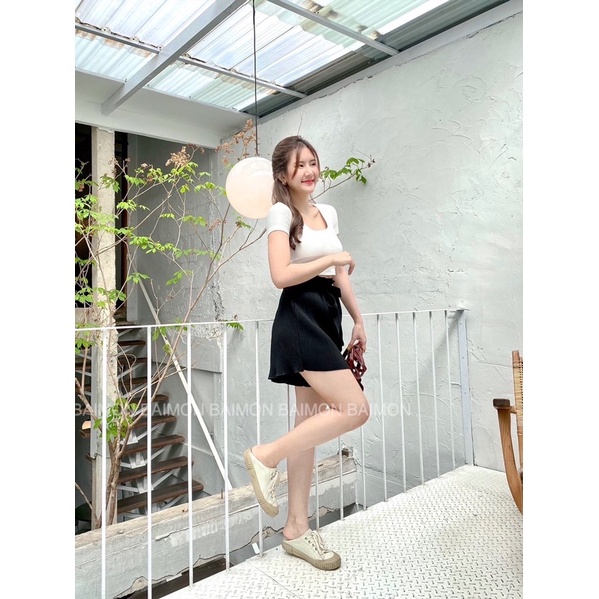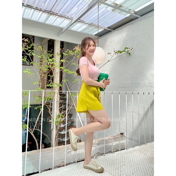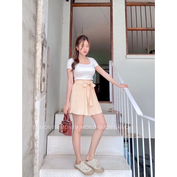 (เหลือ 74.- โค้ดหน้าร้าน+โค้ด DETMAR30) กางเกงอัดพลีทขาสั้น กางเกงขาสั้น สีพื้น 7 สี กางเกงขาสั้นอัดพลีท เอวฟรีไซต์
