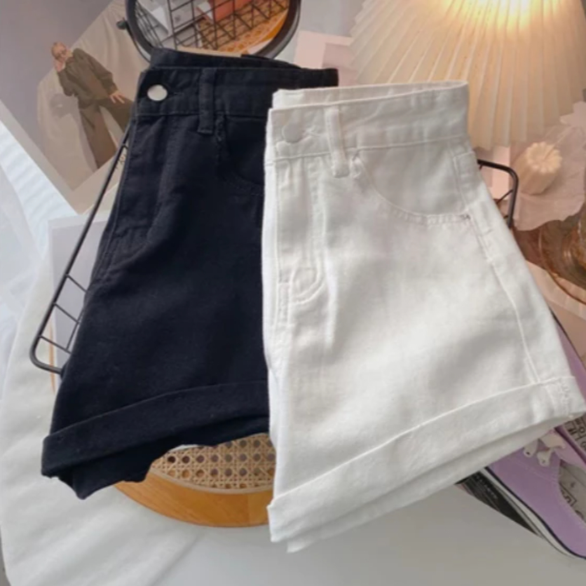 NICO BRA ผู้หญิงเกาหลีกางเกงยีนส์ขาสั้น เอวสูงเรียบๆกางเกงขาสั้น S-2XL เอวสูงเรียบๆ กางเกงยีนส์ #1
