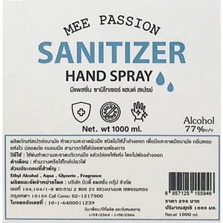 แอลกอฮอล์ น้ำหอม ขนาด 1000 ml. Mee passion/Alsoff กลิ่นแป้งเด็ก น้ำหอม เกรดพรีเมี่ยม สเปรย์แอลกอฮอล์