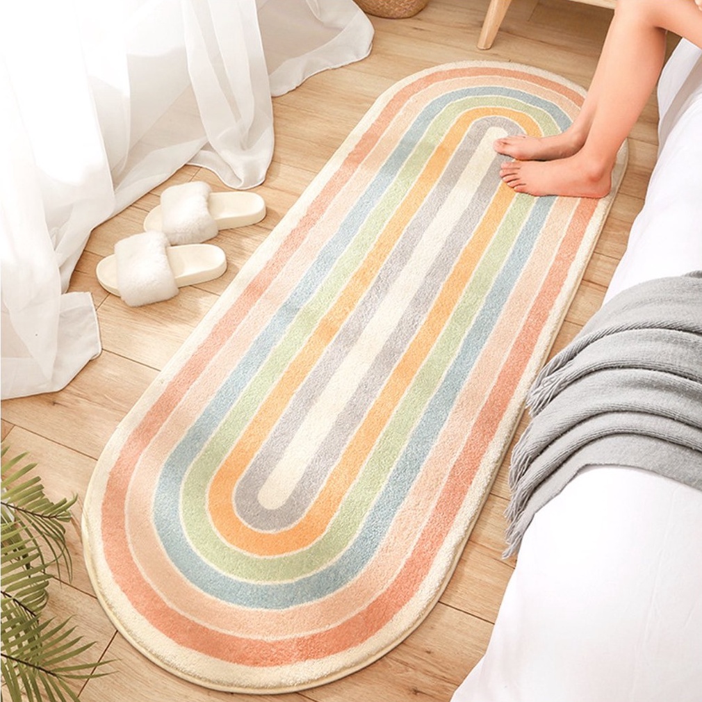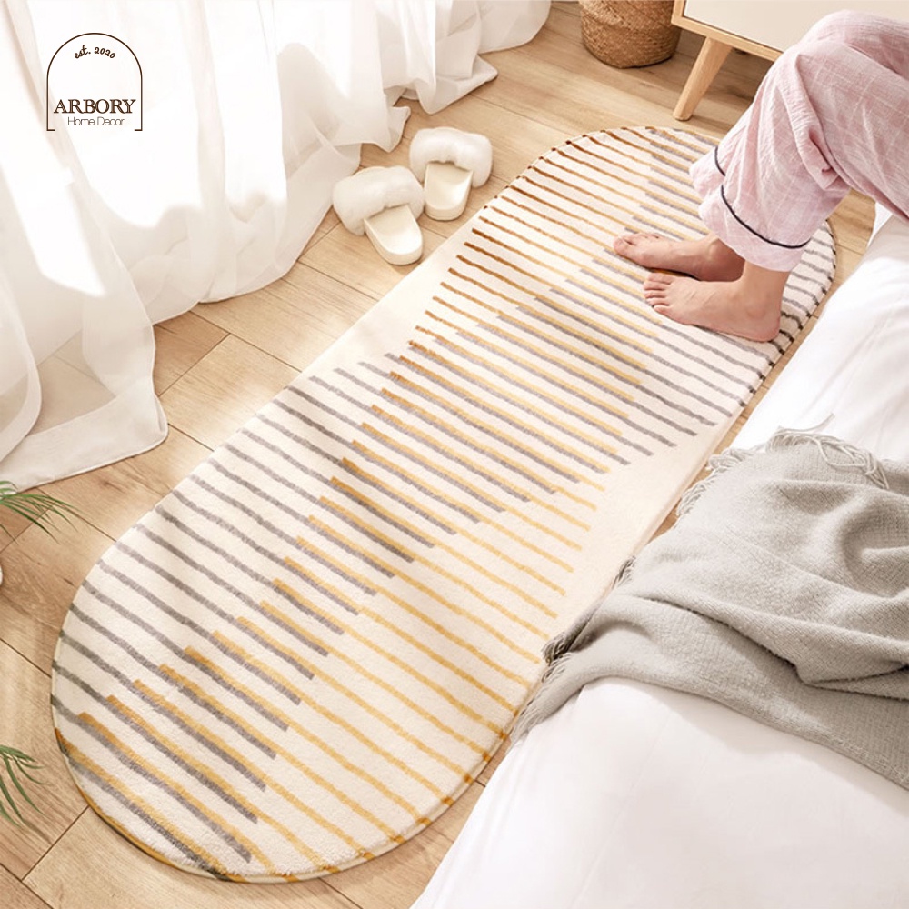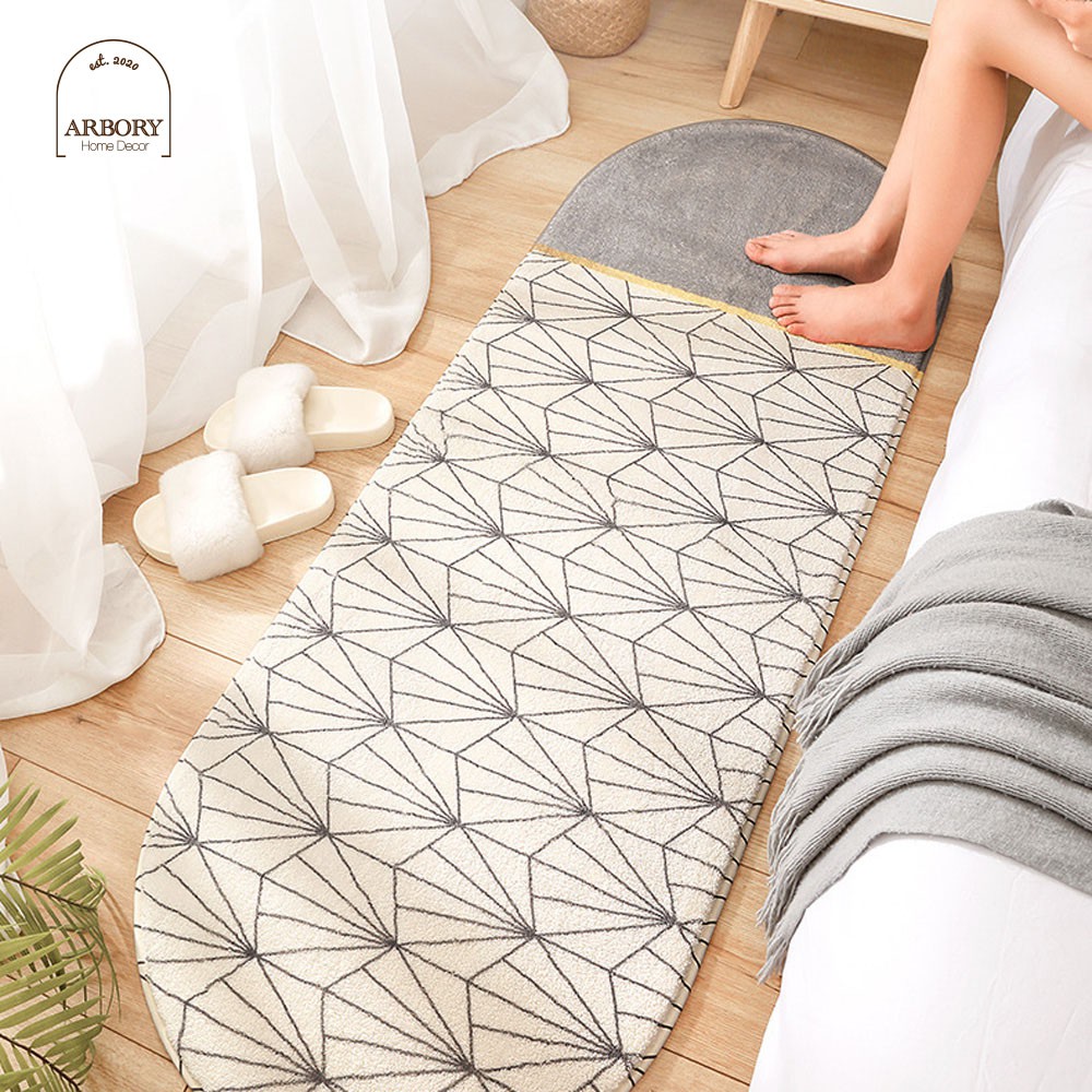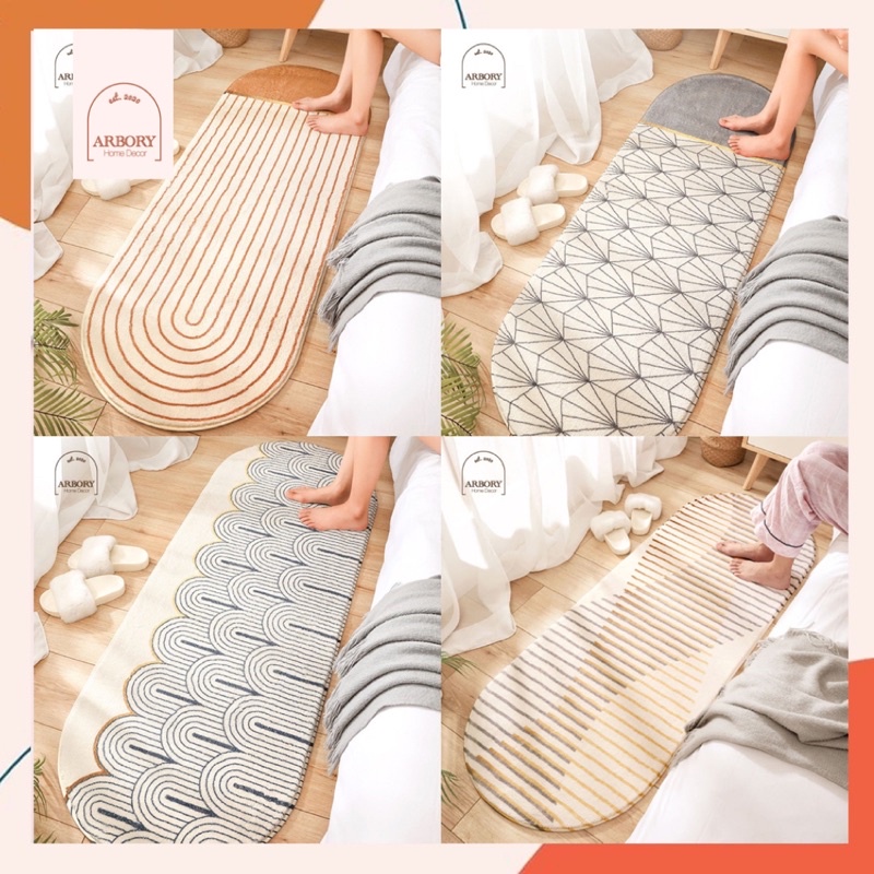 พรมยาว ขอบมนรี พรมห้องนอน พรมแต่งห้อง modern มินิมอล ซักเครื่องได้ มีกันลื่น