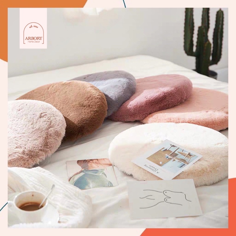 เบาะรองนั่ง เบาะขนมิ้ง ทรงกลม45x45 ขนฟู เบาะเมมโมรี่โฟม เบาะรองเก้าอี้ ที่รองนั่ง ที่รองเก้าอี้