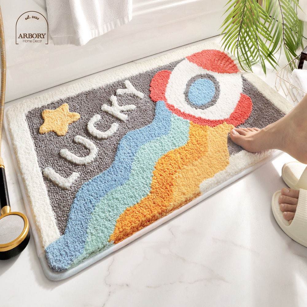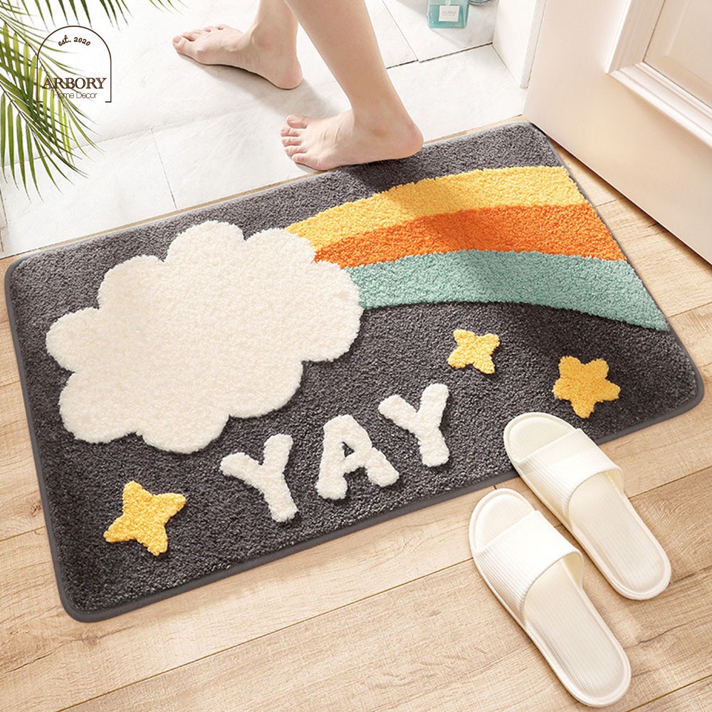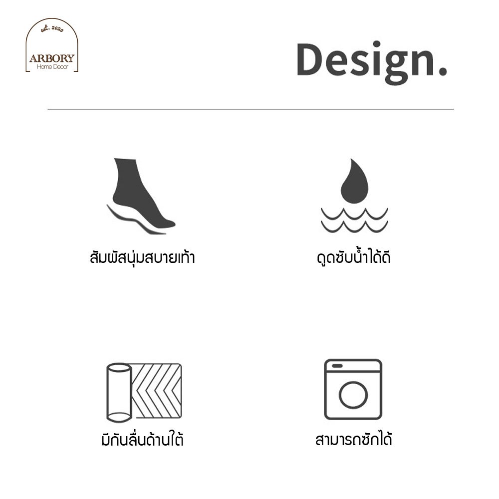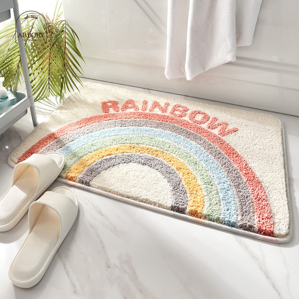 พรมเช็ดเท้า ผ้าเช็ดเท้า กันลื่น ทรงสี่เหลี่ยม ขนาด 40x60 ซม เหมาะวางหน้าห้องน้ำ ซับน้ำไว
