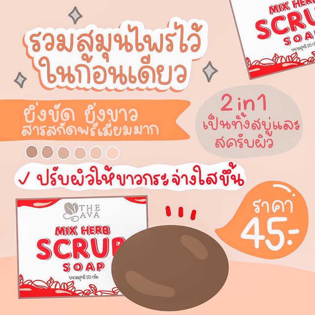 สบู่สครับกาแฟ เอวา AVA 60 กรัม สบู่สครับเอวา