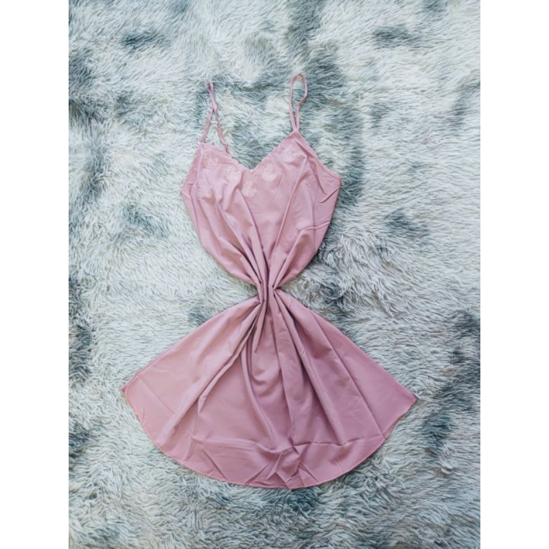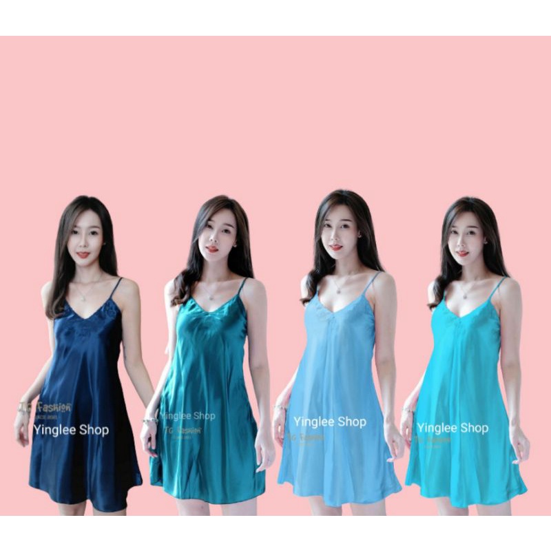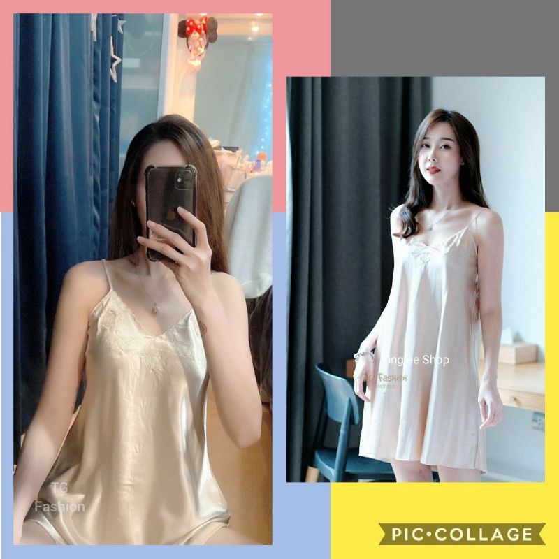 ชุดนอนกระโปรงสายเดี่ยว ผ้าซาติน ปักอก 💘🐥ดีไซน์เป๊ะเรียบหรูดูดี