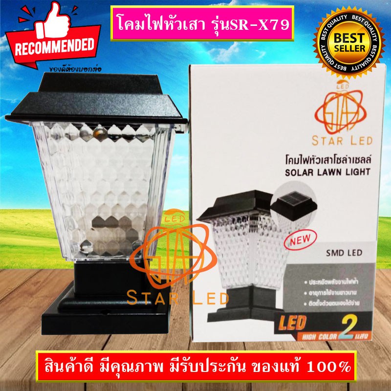 ไฟโซล่าเซลล์ STAR LEDโคมไฟหัวเสา โซล่าเซลล์ รุ่น SR-X79 COLOR 2แสง สีขาวและวอร์มไวท์