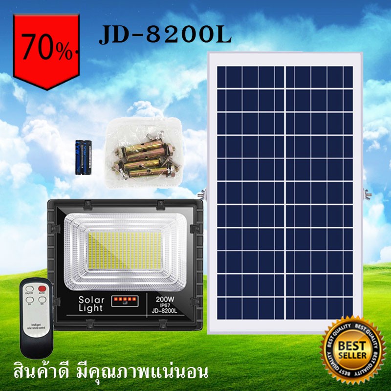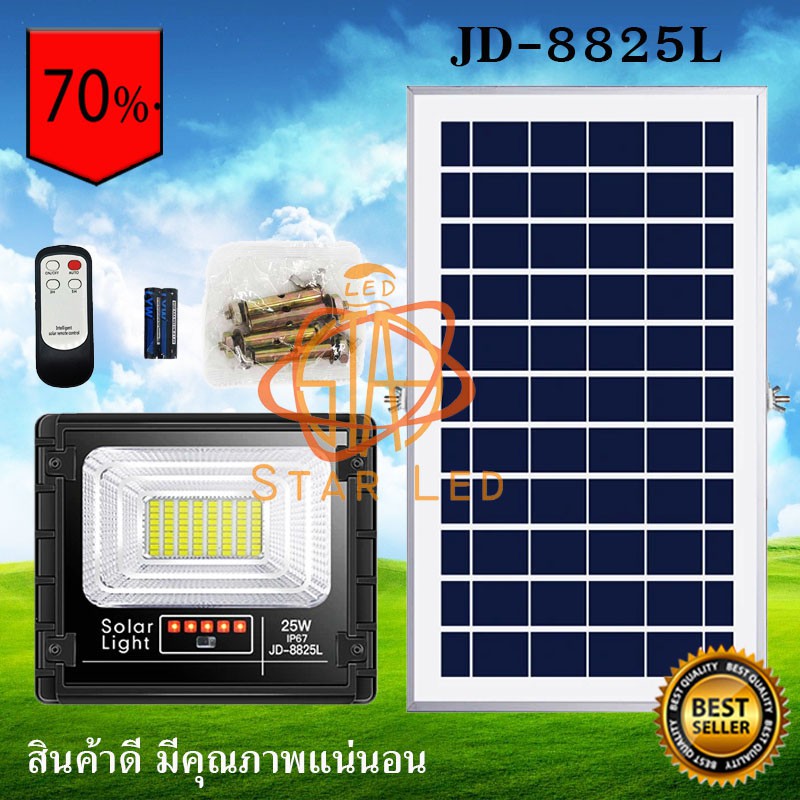 jdjindian ไฟสปอร์ตไลท์โซล่าเซลล์ รุ่น L เเสงขาว JD-8825L-JD-8300L รับประกันสินค้า1ปี