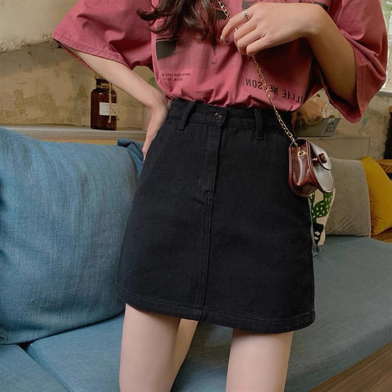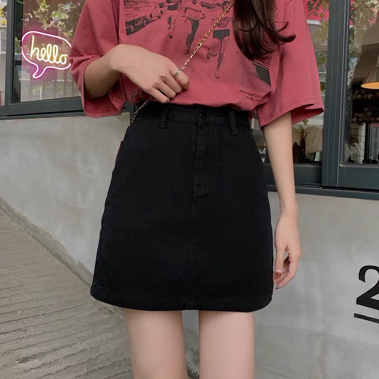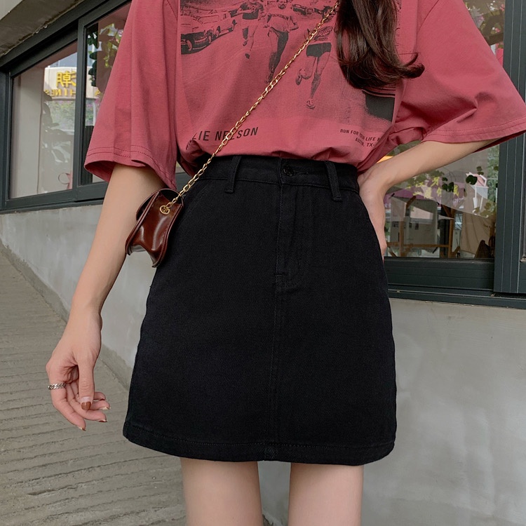 Swan shop 🎗กระโปรงยีนส์เอวสูงทรงเอ🎗 มีสามสี สไตล์เกาหลี สำหรับผู้หญิง พร้อมส่ง