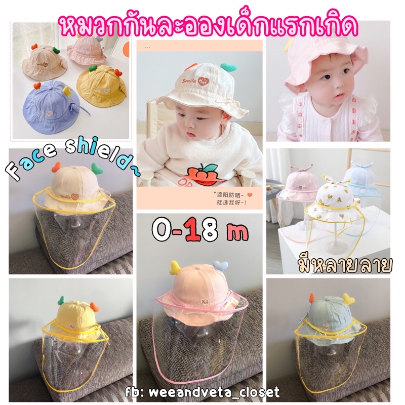 [แรกเกิด-1 ขวบ] หมวกกันละอองเด็กแรกเกิด-เด็กอ่อน/ เฟสชิวล์ face shield ลายน่ารัก มีหลายลาย👼🏻