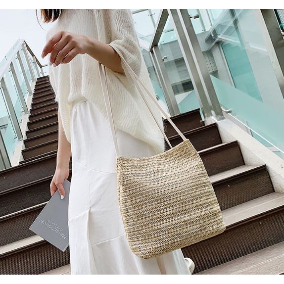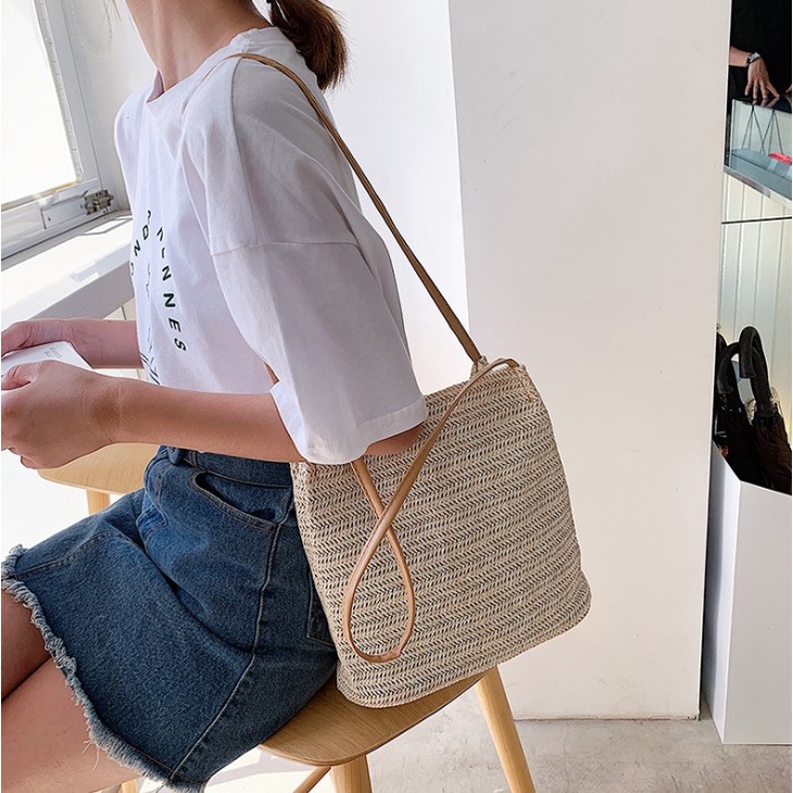 🔥กระเป๋าสาน กระเป๋าสะพายข้าง Hand Craft Woven Promotion (A09) กระเป๋าผ้า