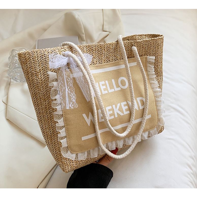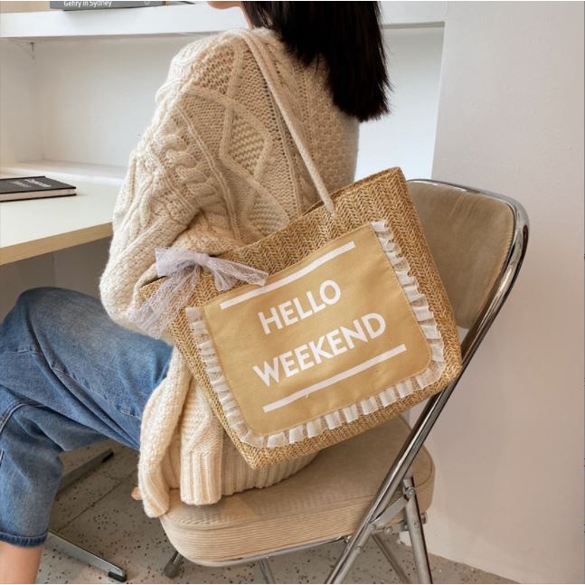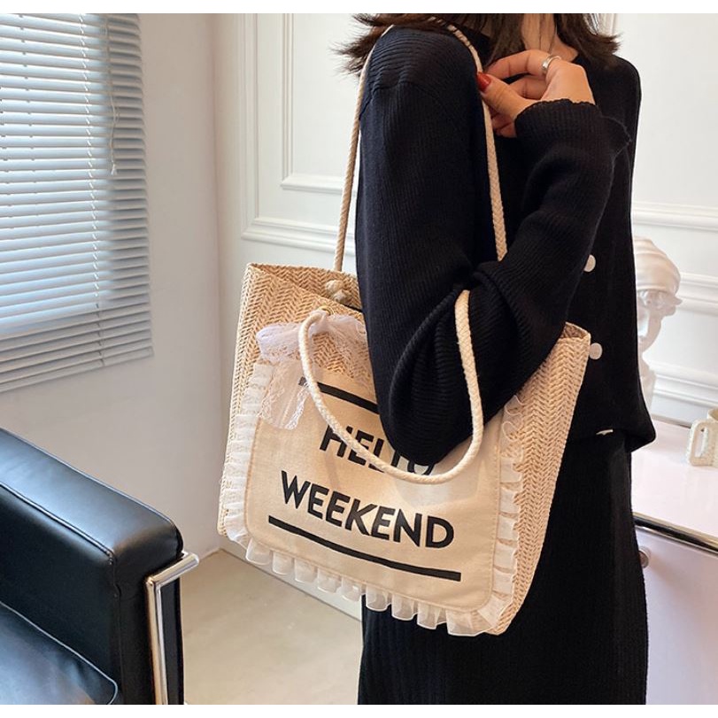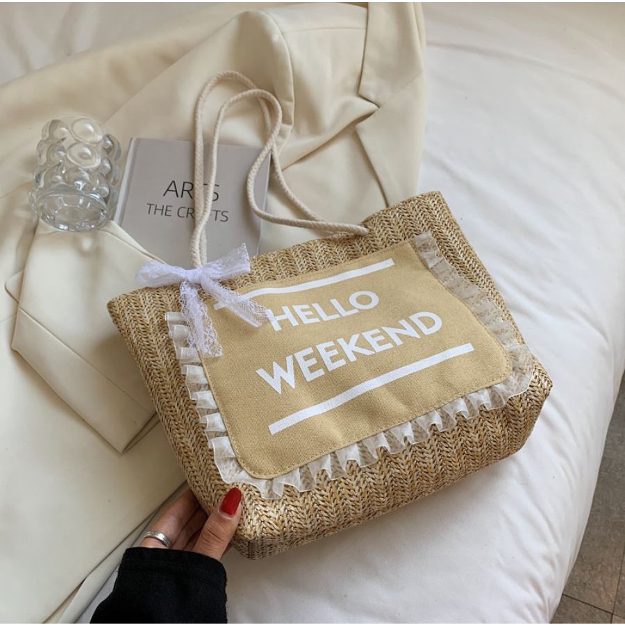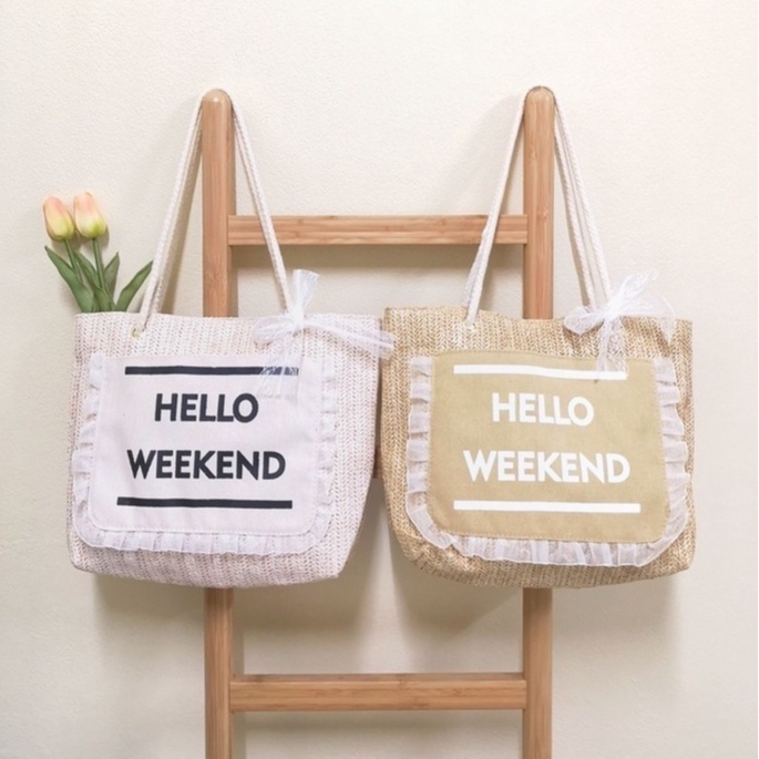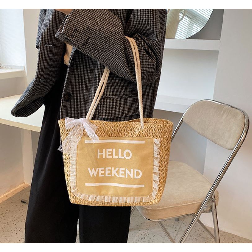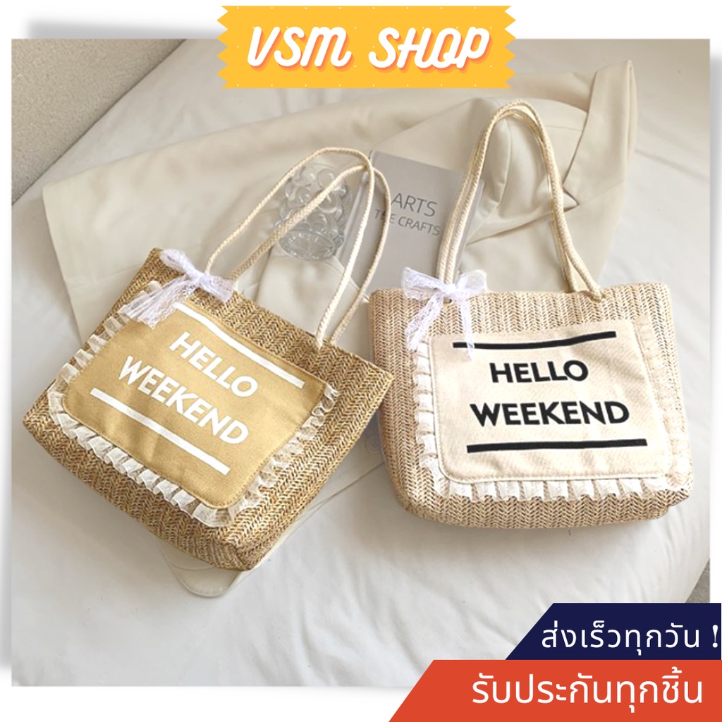 กระเป๋าสาน Hello weekend สายเชือก (A178) กระเป๋าสะพายข้าง กระเป๋าแฟชั่น