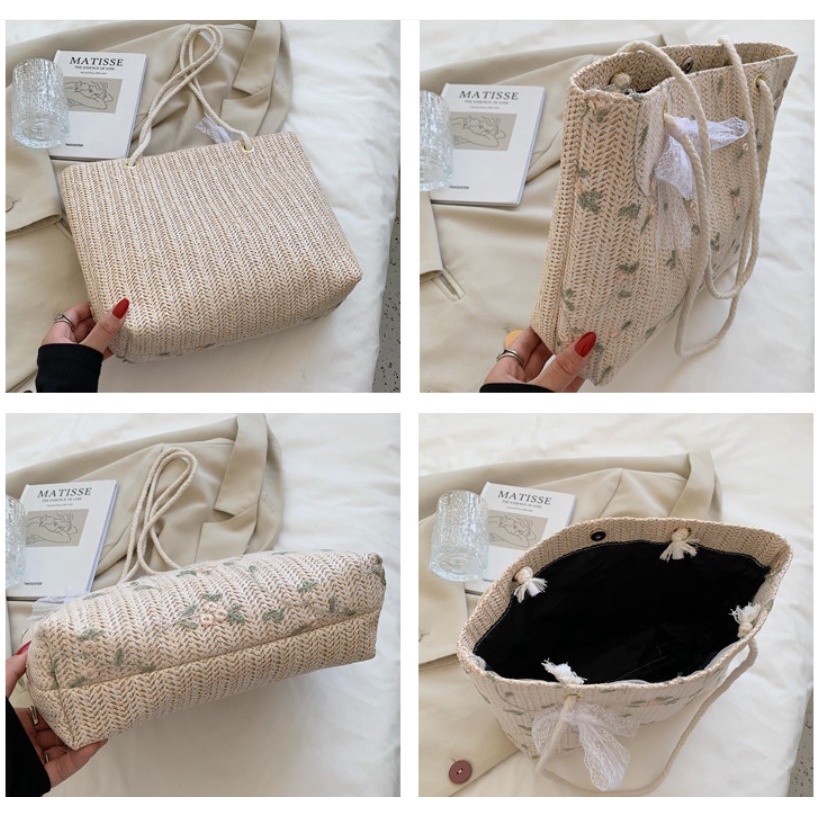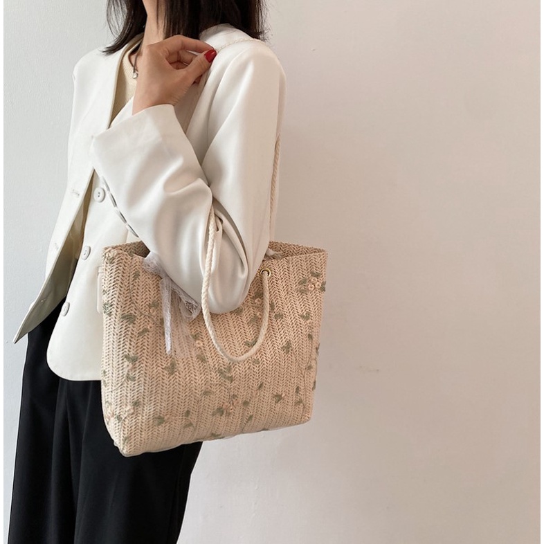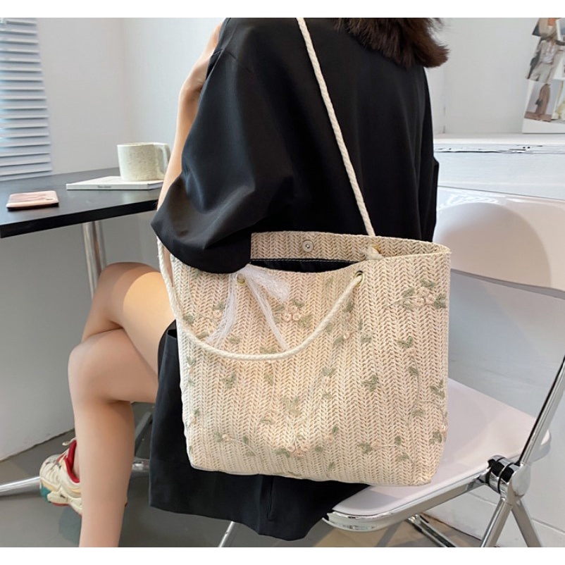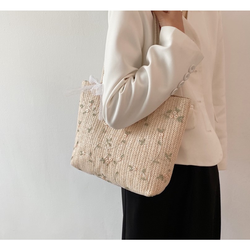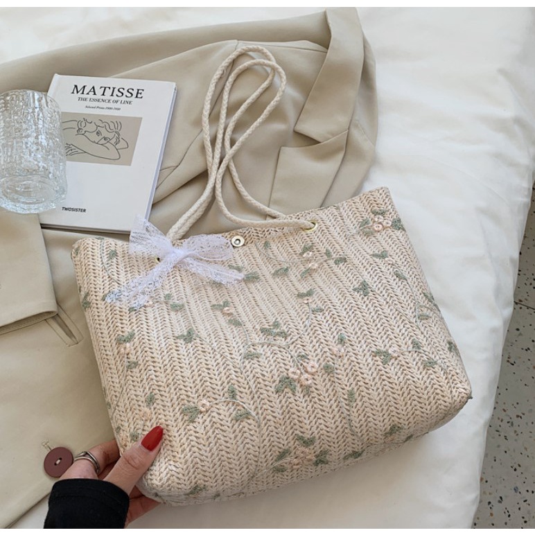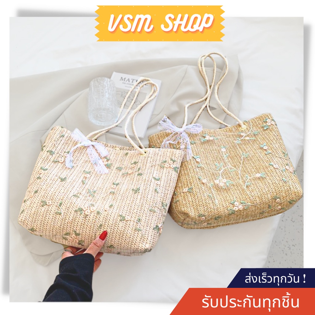 กระเป๋าสาน Green flower (A233) กระเป๋าสะพายข้าง