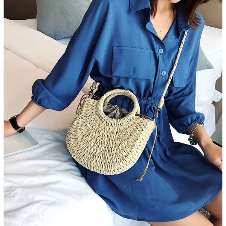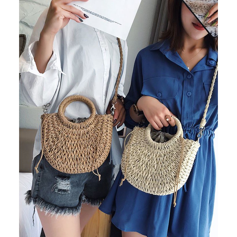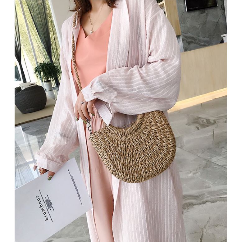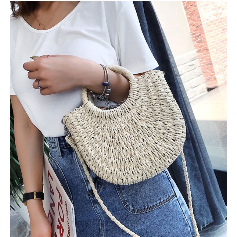 Mini Half moon กระเป๋าสาน กระเป๋าสะพายข้าง Promotion ขายดี (A49)