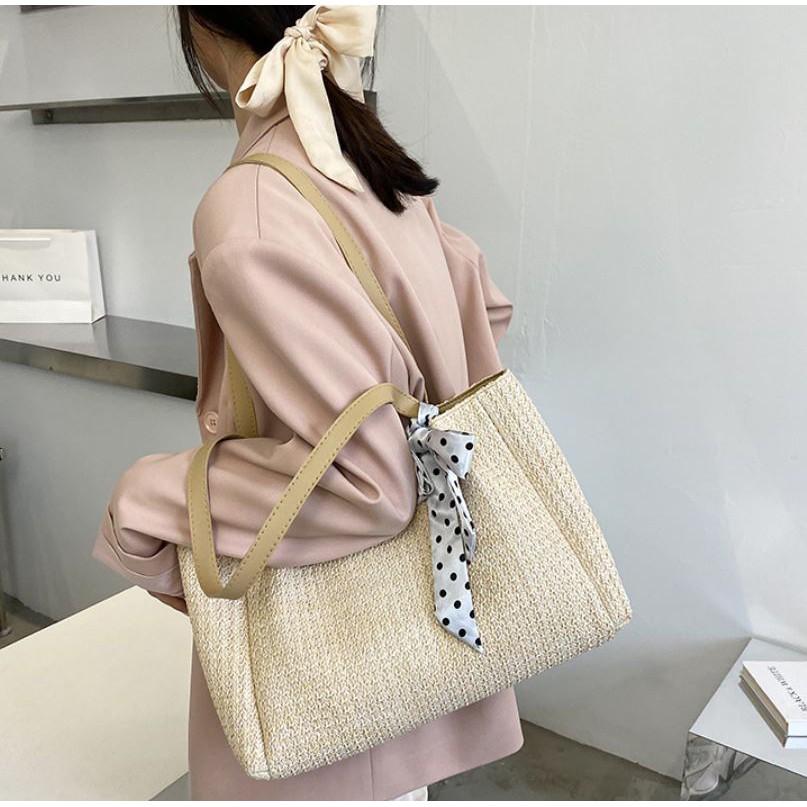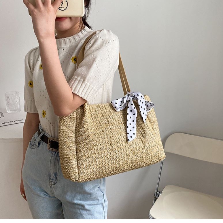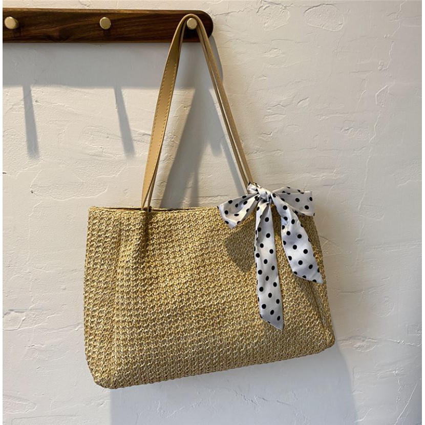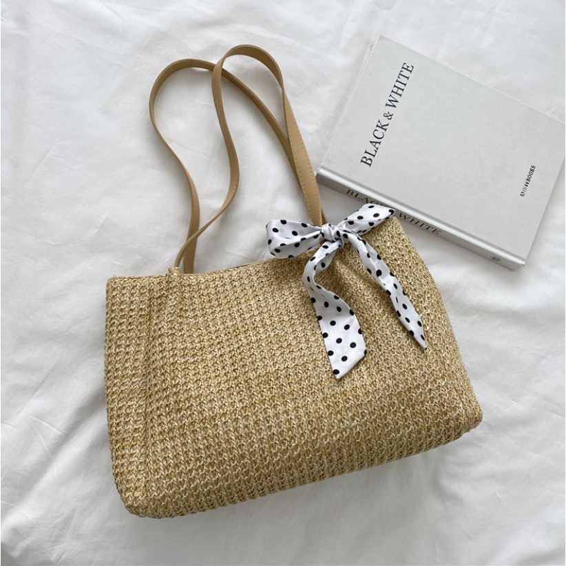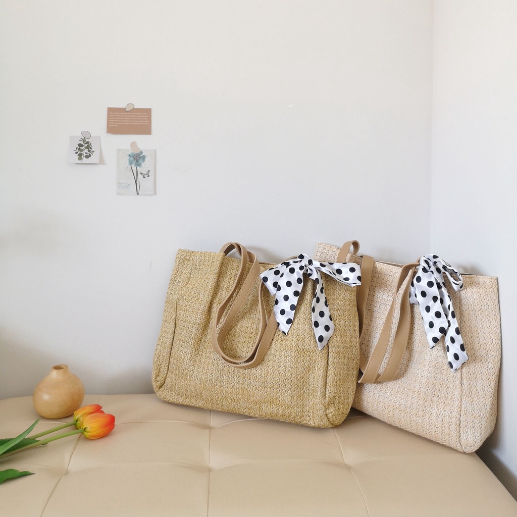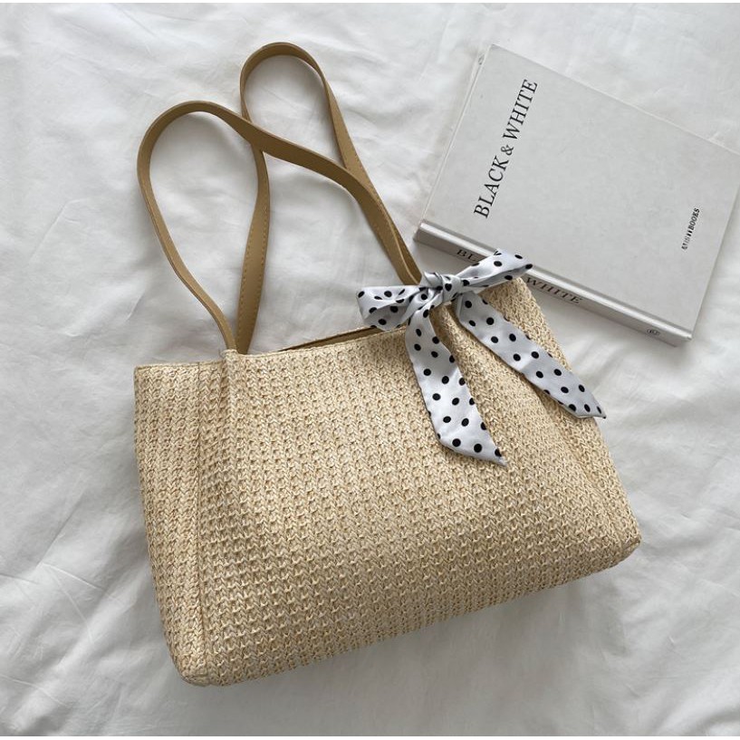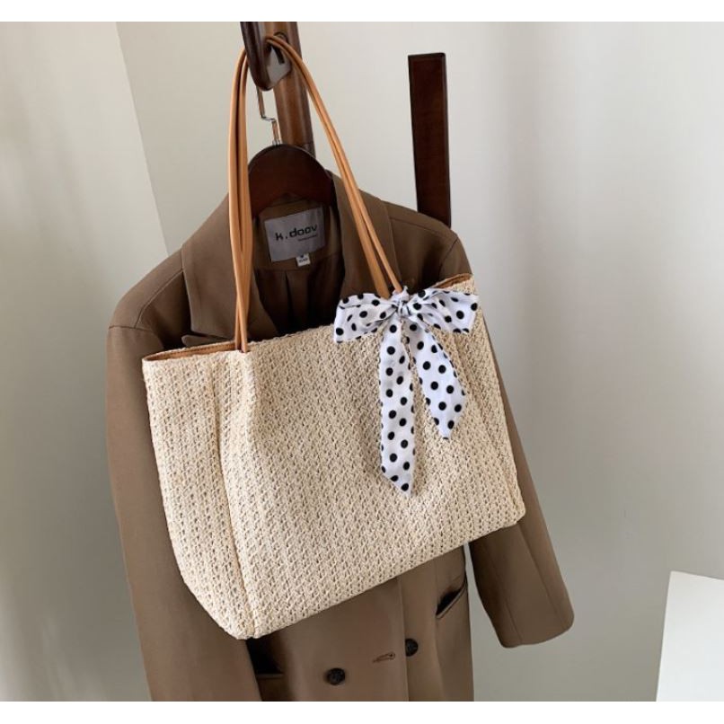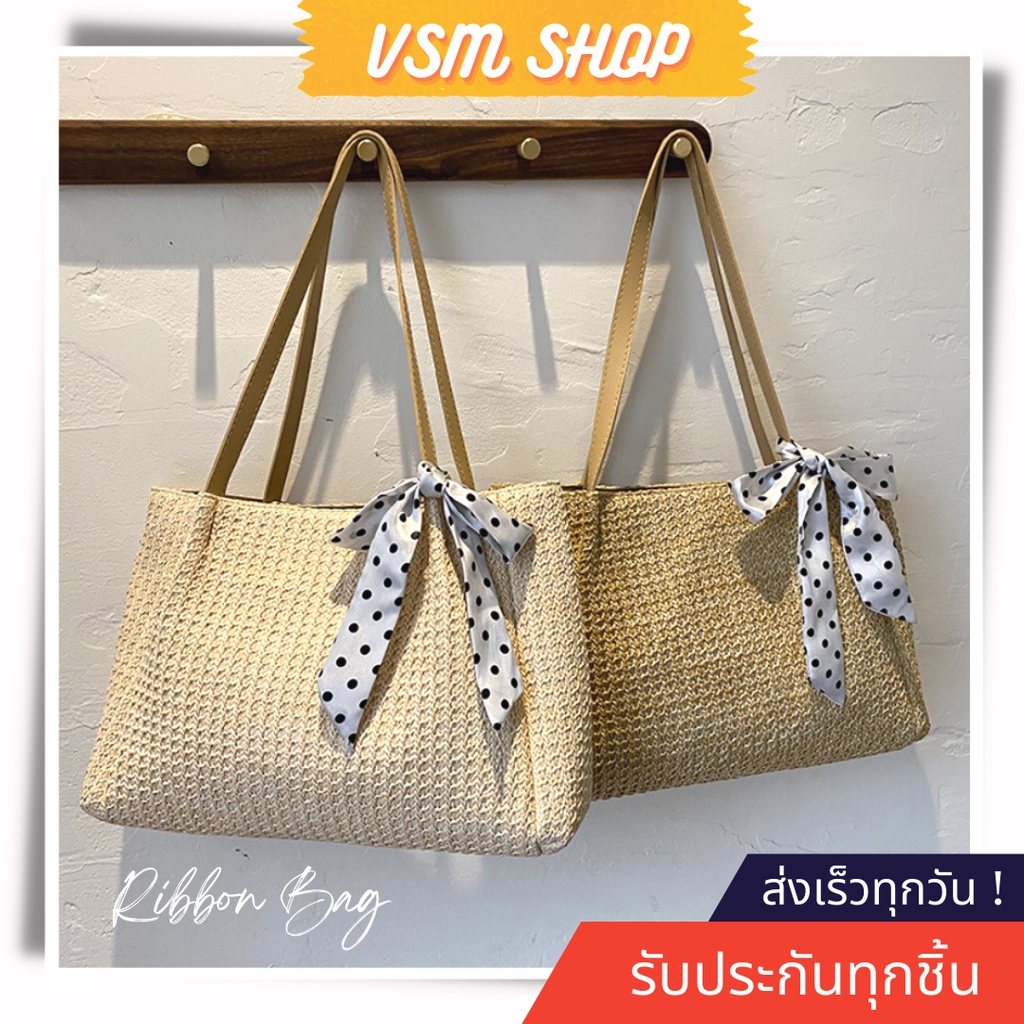 กระเป๋าสาน กระเป๋าสะพายข้าง Ribbon Tote กระเป๋าแฟชั่น (A154)