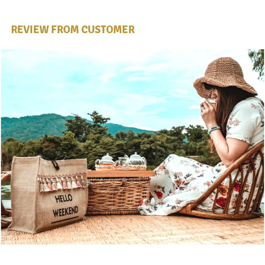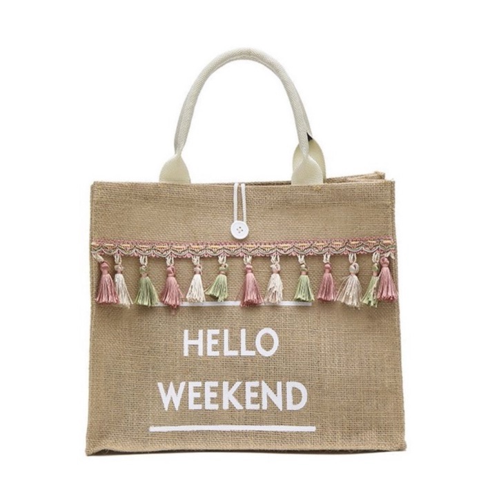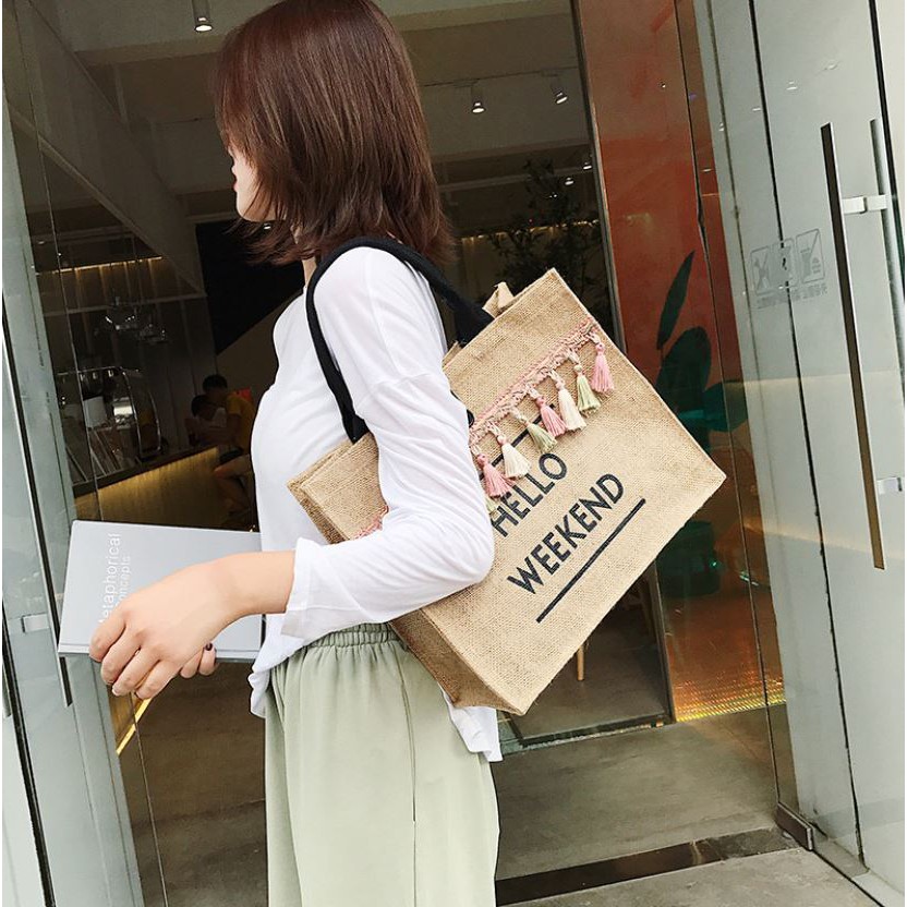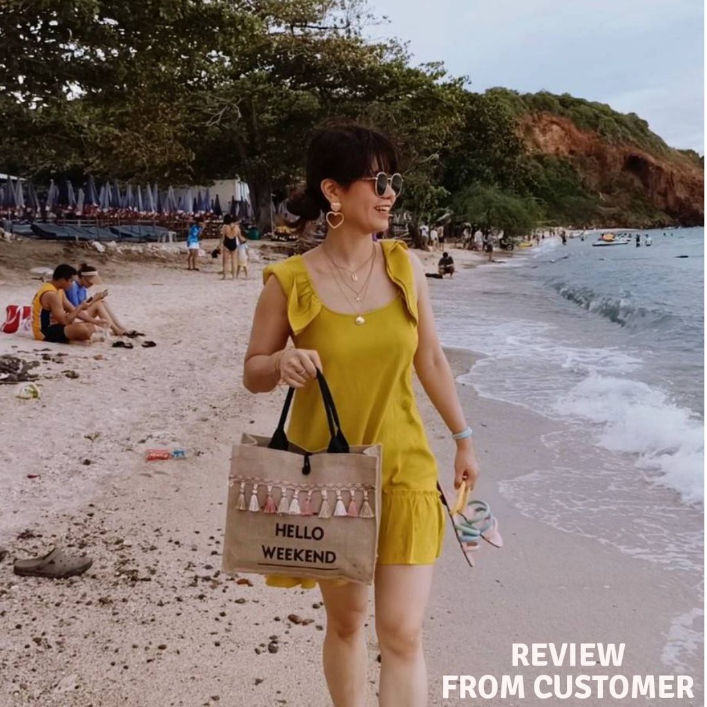 กระเป๋าสาน Hello Weekend แต่งพู่ (A131) กระเป๋าถือสะพายข้าง