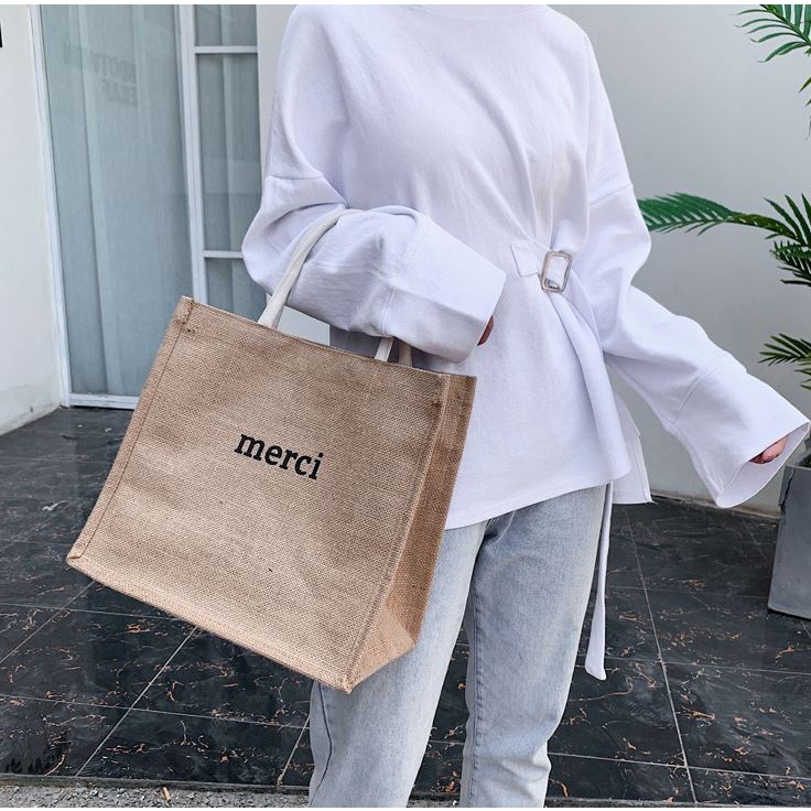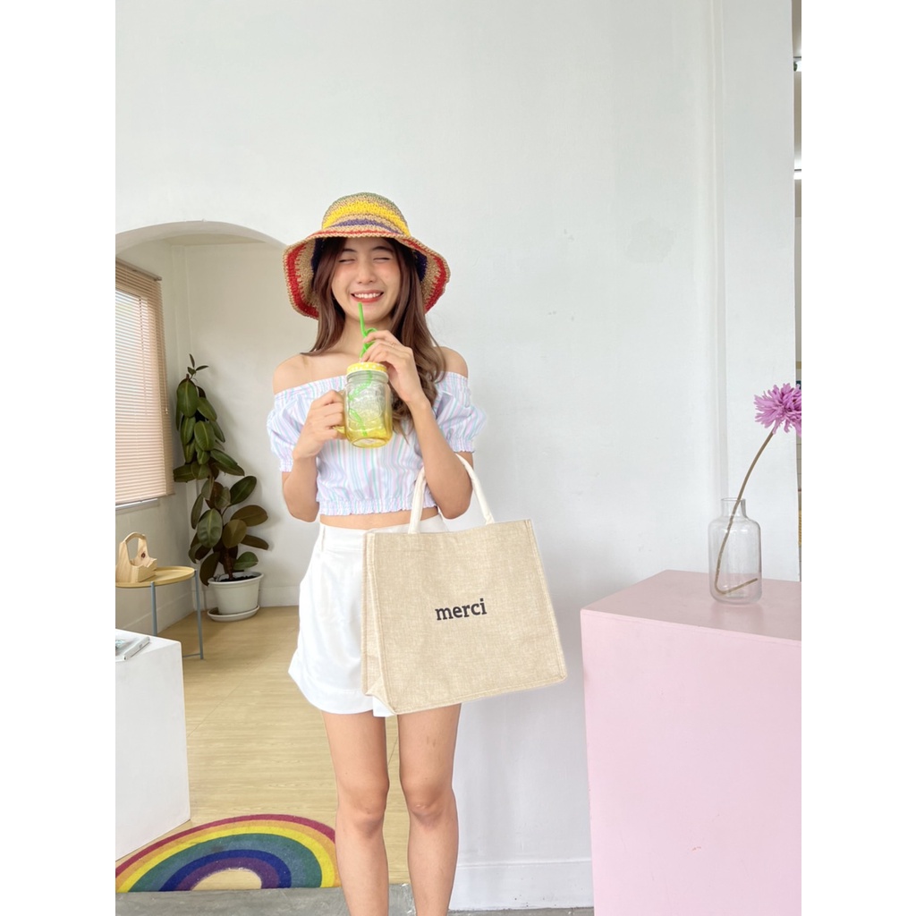 A169-33-10💥 พร้อมส่งจากไทย กระเป๋าสาน Merci แบบใหม่ (A169) กระเป๋าถือ