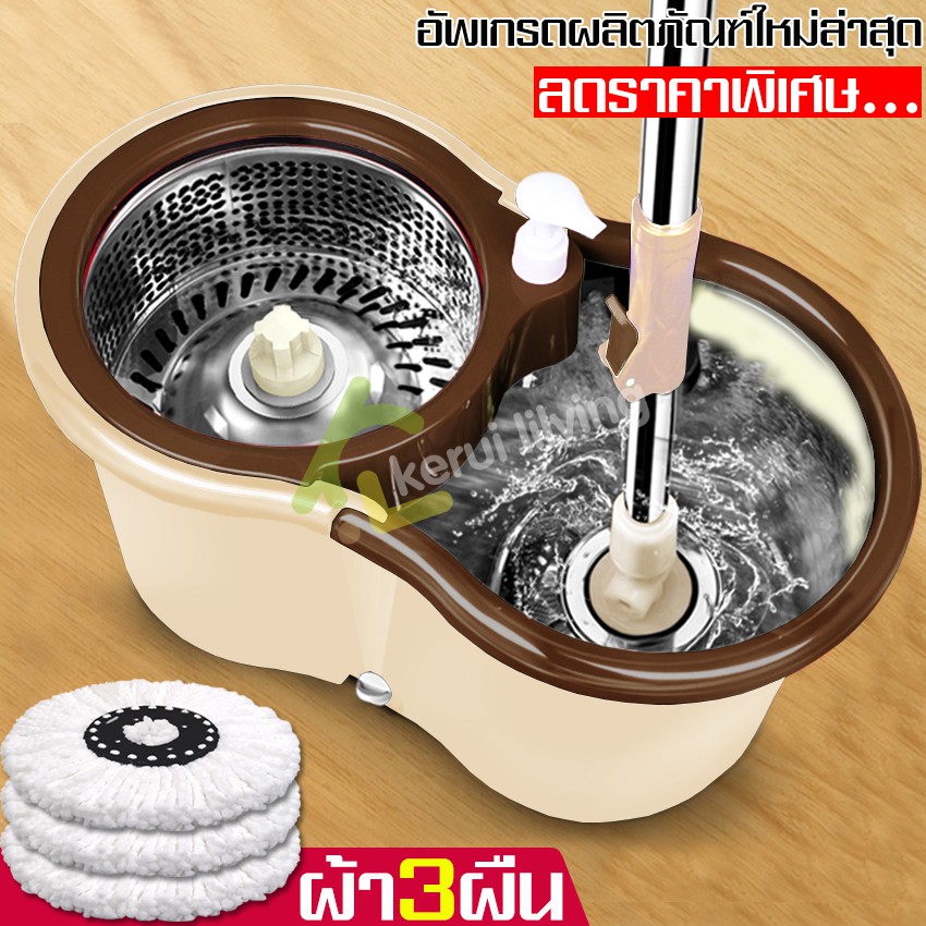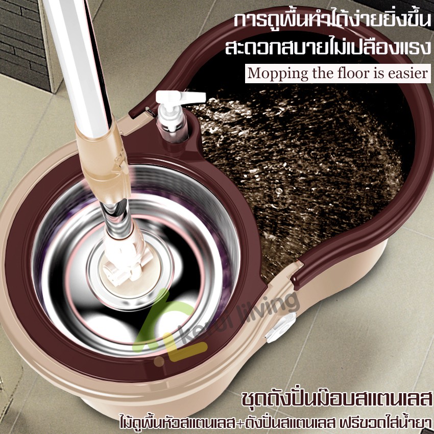 ชุดถังปั่นสแตนเลส ไม้ถูพื้น ไม้ม๊อบถูพื้น ถังปั่นไม้ม๊อบ ไม้ถูพื้น360องศา อุปกรณ์ไม้ถูพื้นถังปั่น ถังปั่นม็อบ ไม้ม๊อบ