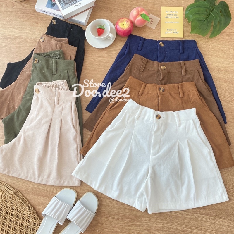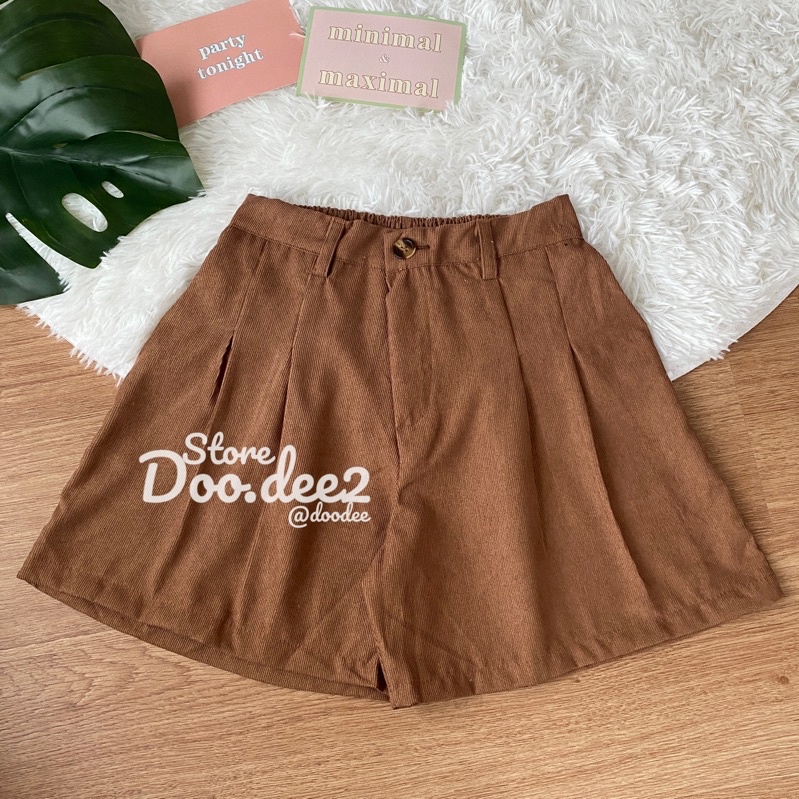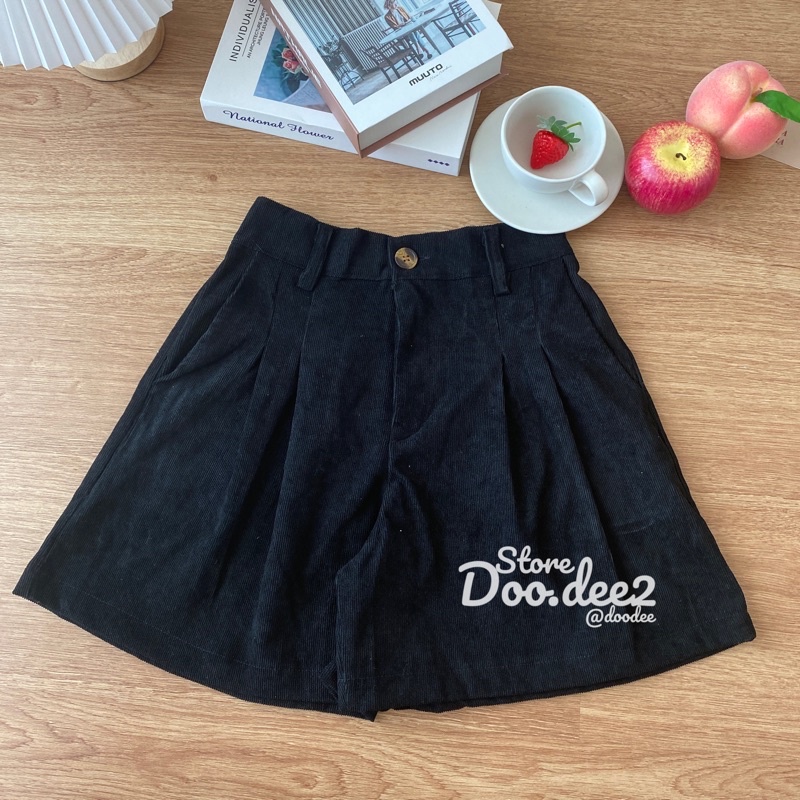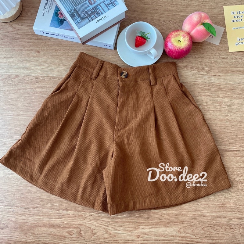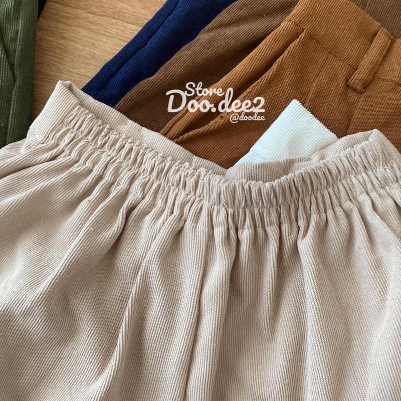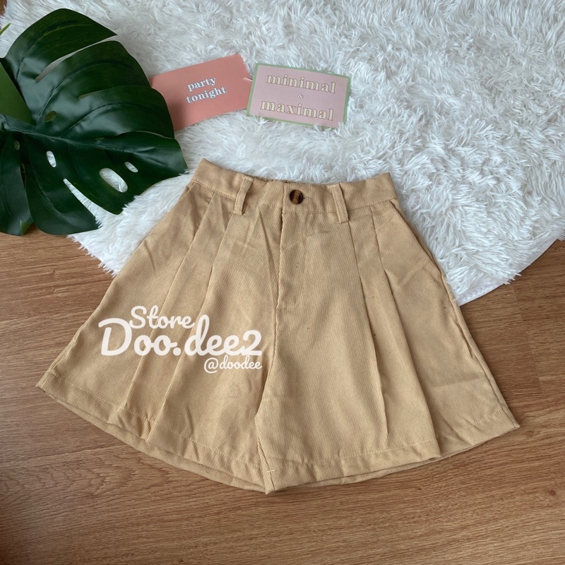♦️DOODEE2♦️กางเกงขาสั้น ลูกฟูก ขาบานจับจีบหน้า กระเป๋าใช้งานได้จริง