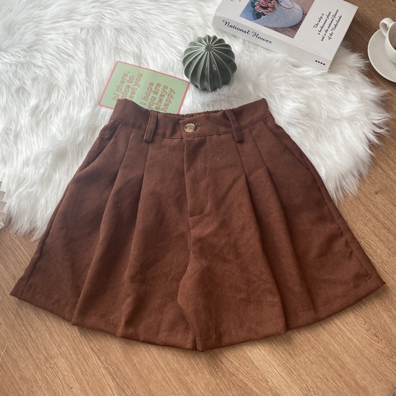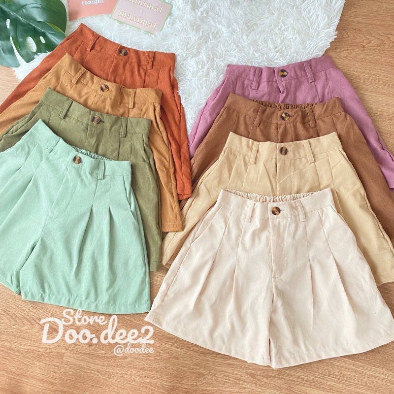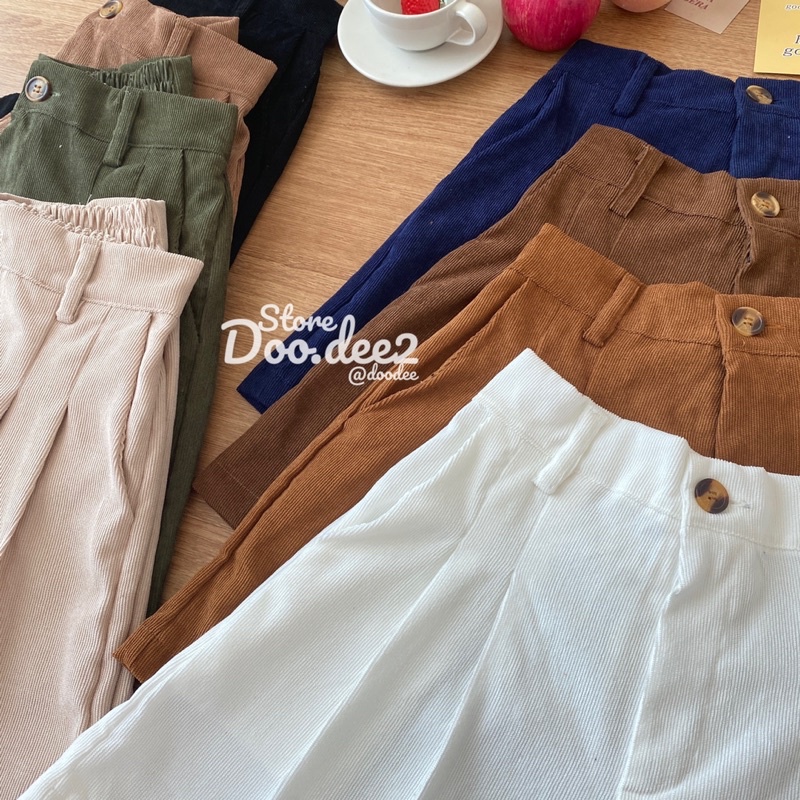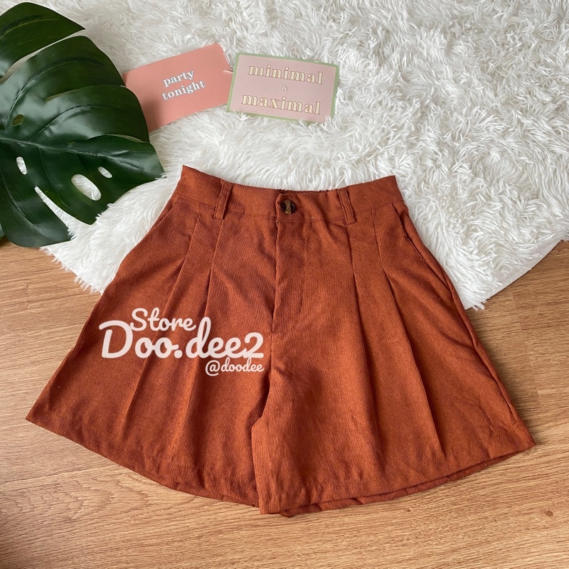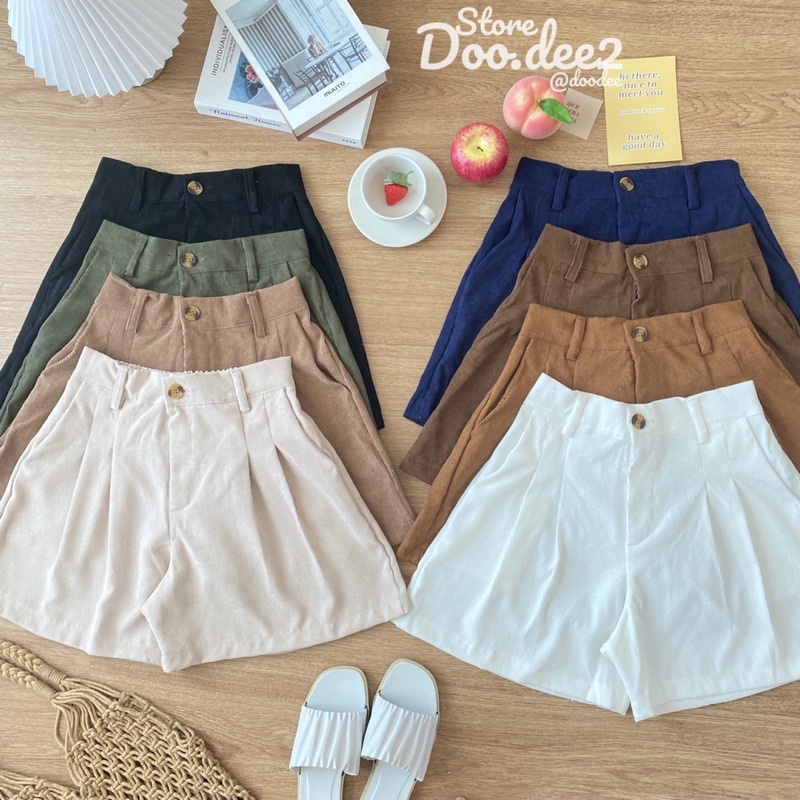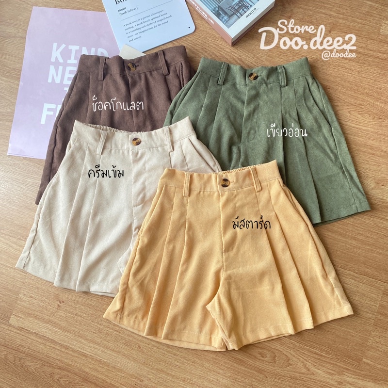 ♦️DOODEE2♦️กางเกงขาสั้น ลูกฟูก ขาบานจับจีบหน้า กระเป๋าใช้งานได้จริง