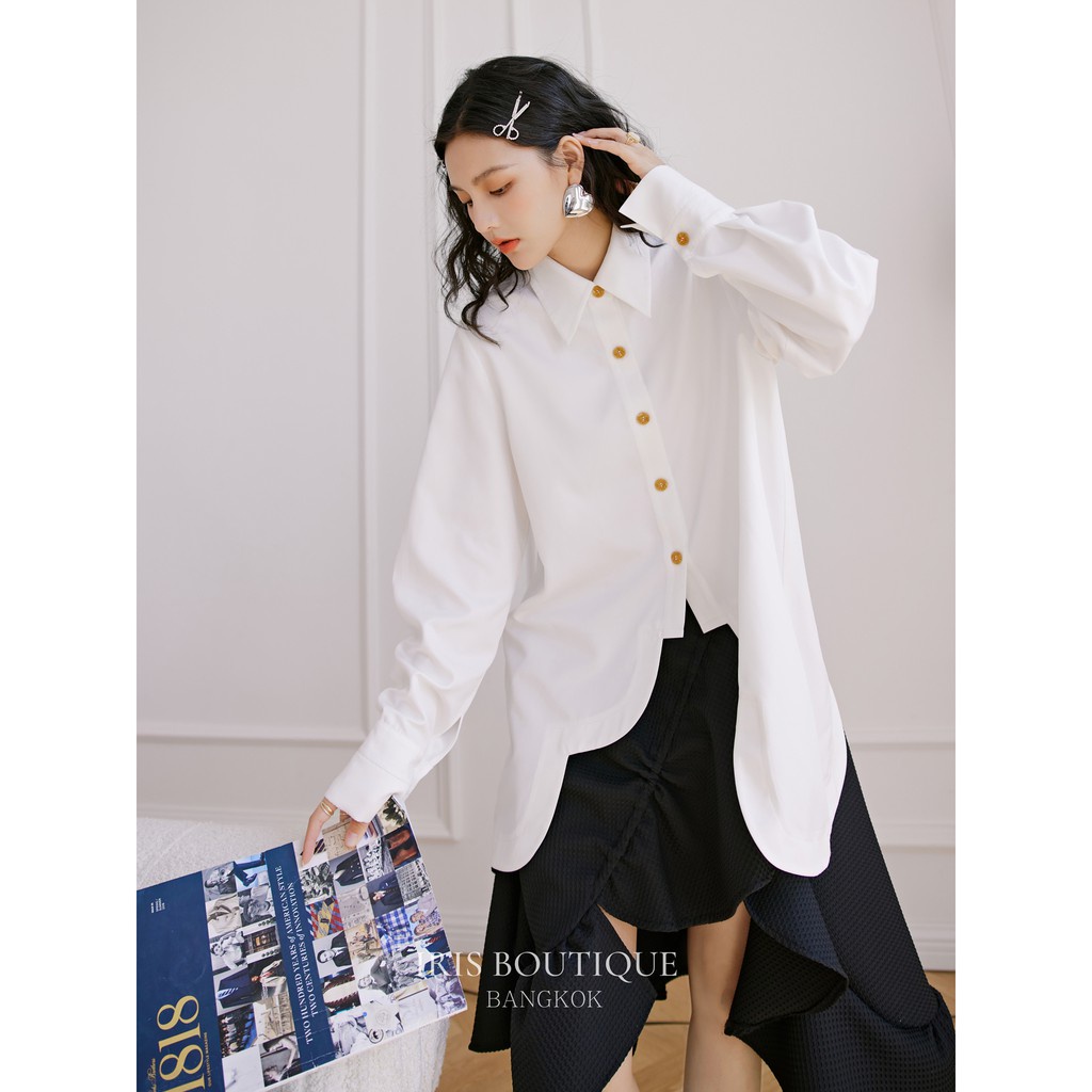 พร้อมส่ง สินค้าลิขสิทธิ์แท้ Iris Boutique IS040 White wave shirt เสื้อเชิ้ต ดูดี ใส่เที่ยว ใส่ทำงาน ระบายอากาศได้ดี