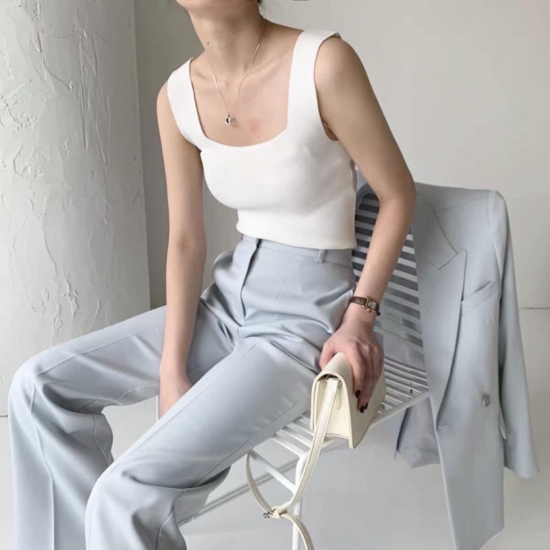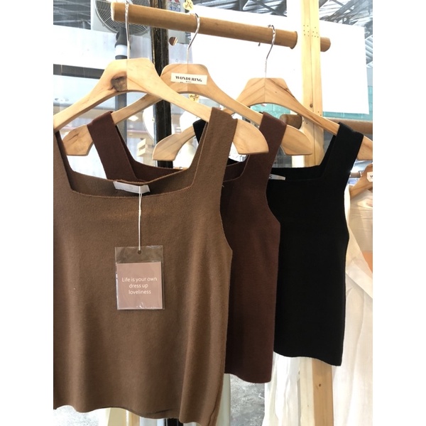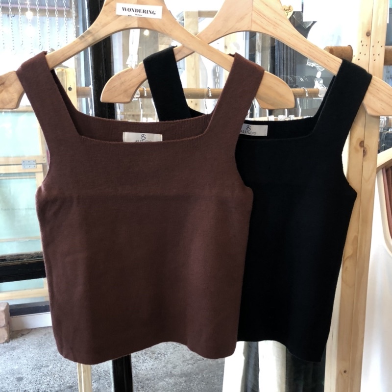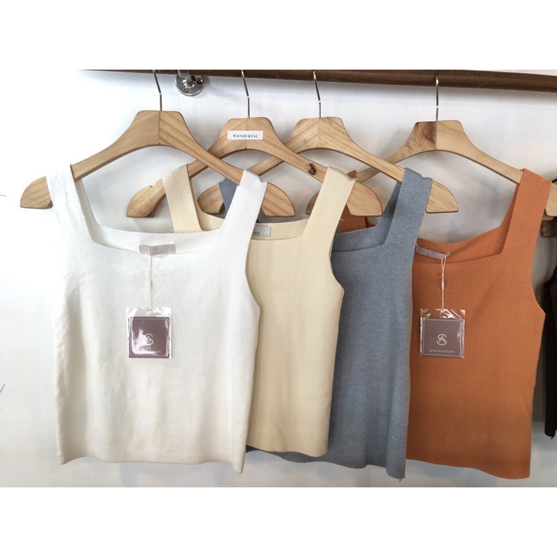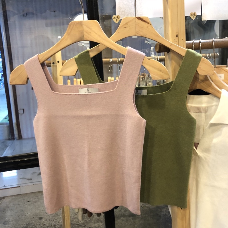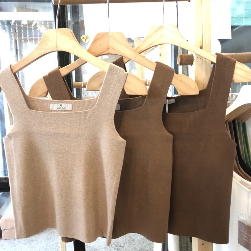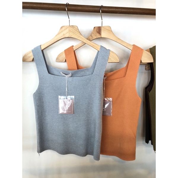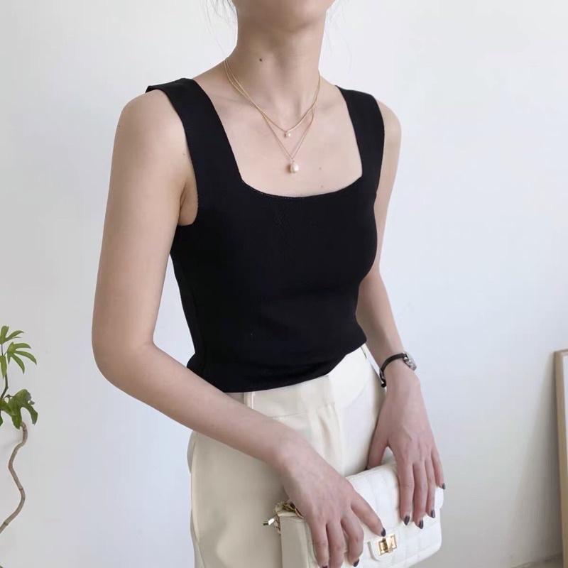 🤍✨เสื้อกล้ามไหมพรม คอเหลี่ยม ผ้านิ่ม
