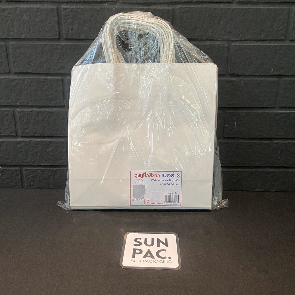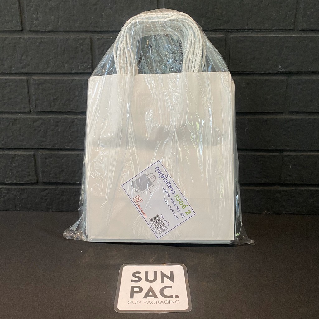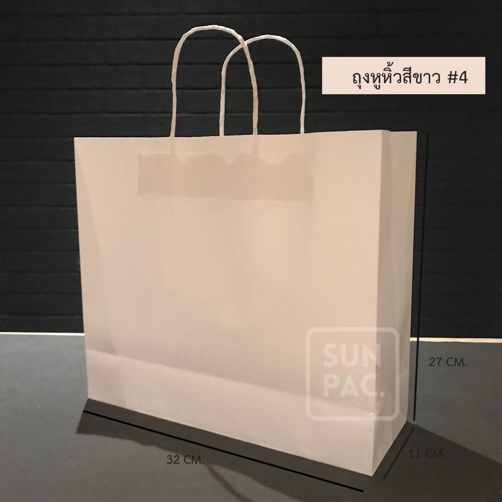 ถุงกระดาษหูหิ้วสีขาว105แกรม รับน้ำหนักได้เยอะ