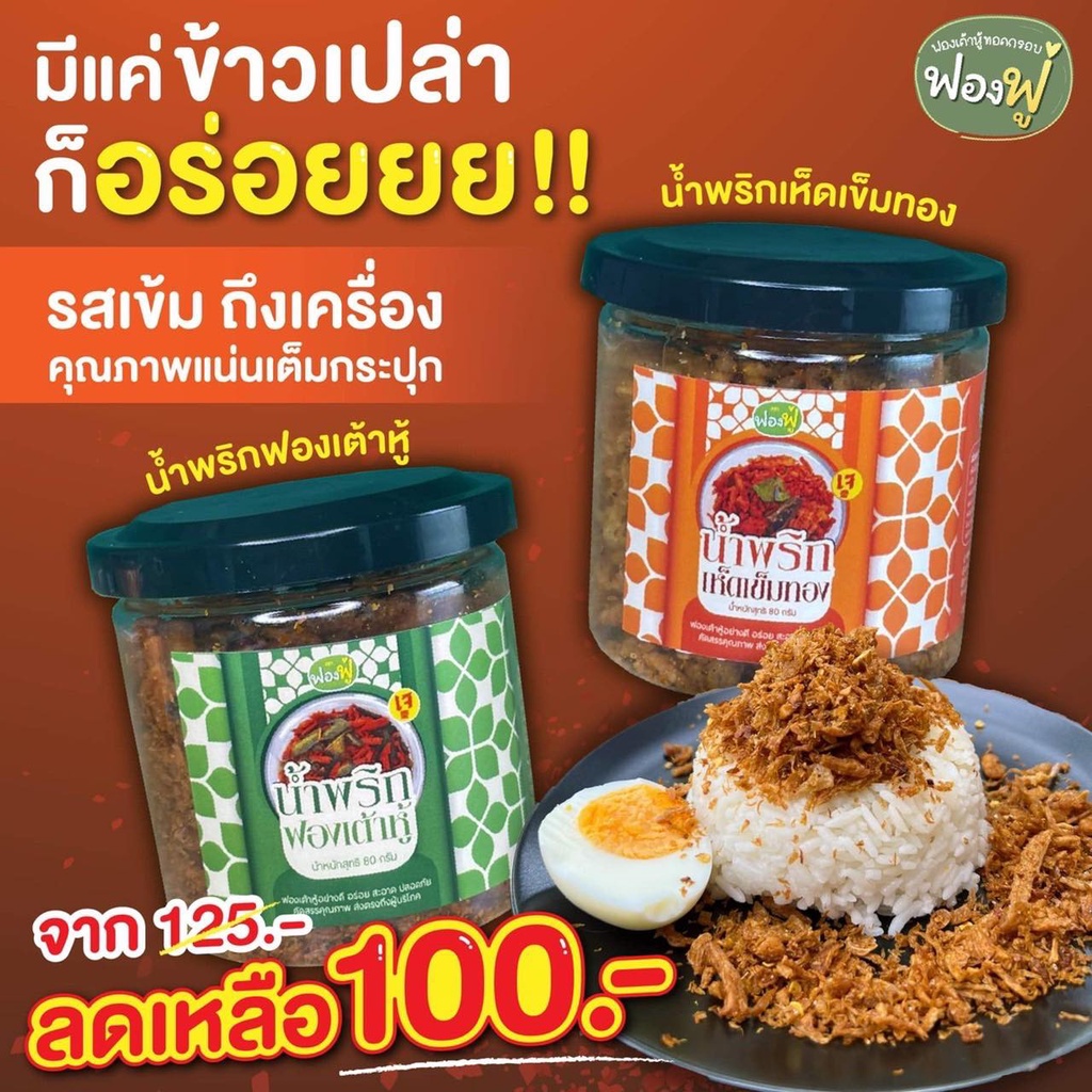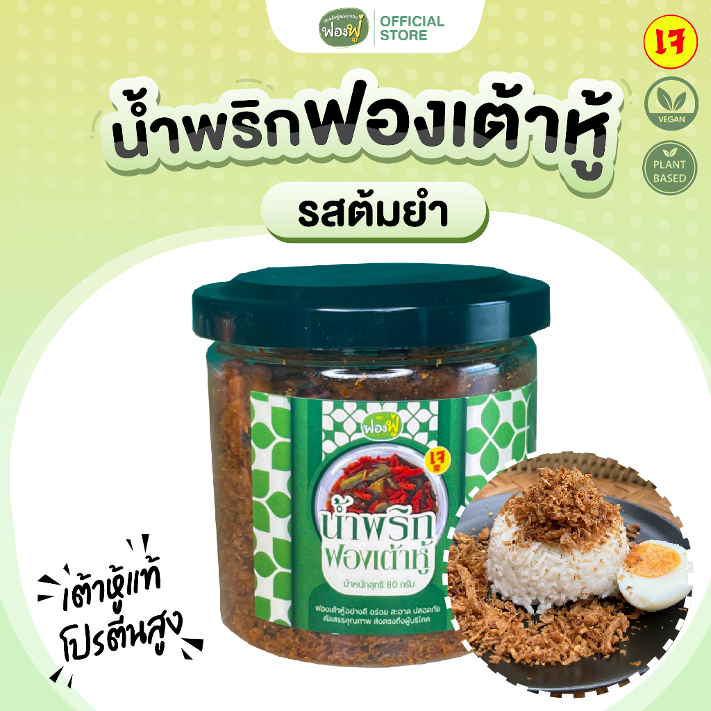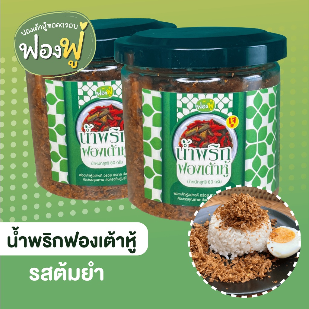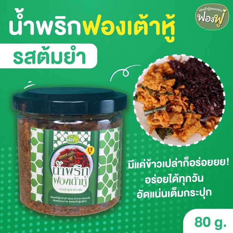 Fongfoo ฟองฟู่ - น้ำพริก น้ำพริกฟองเต้าหู้ รสต้มยำ (80 กรัม) เข้มข้น ถึงเครื่อง คุณภาพแน่นเต็มกระปุก