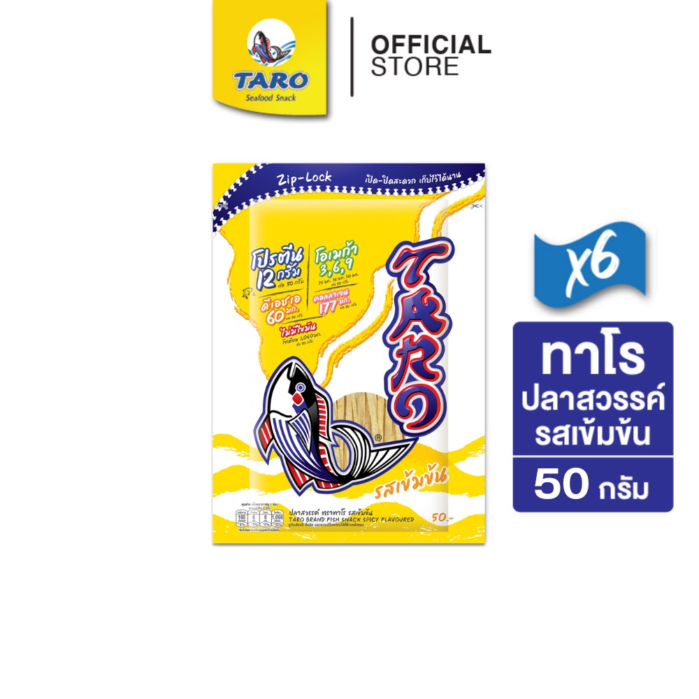 [แพ็ค 6] TARO ทาโร ขนมปลาเส้น ขนาด 50 บาท รสเข้มข้น 50ก.