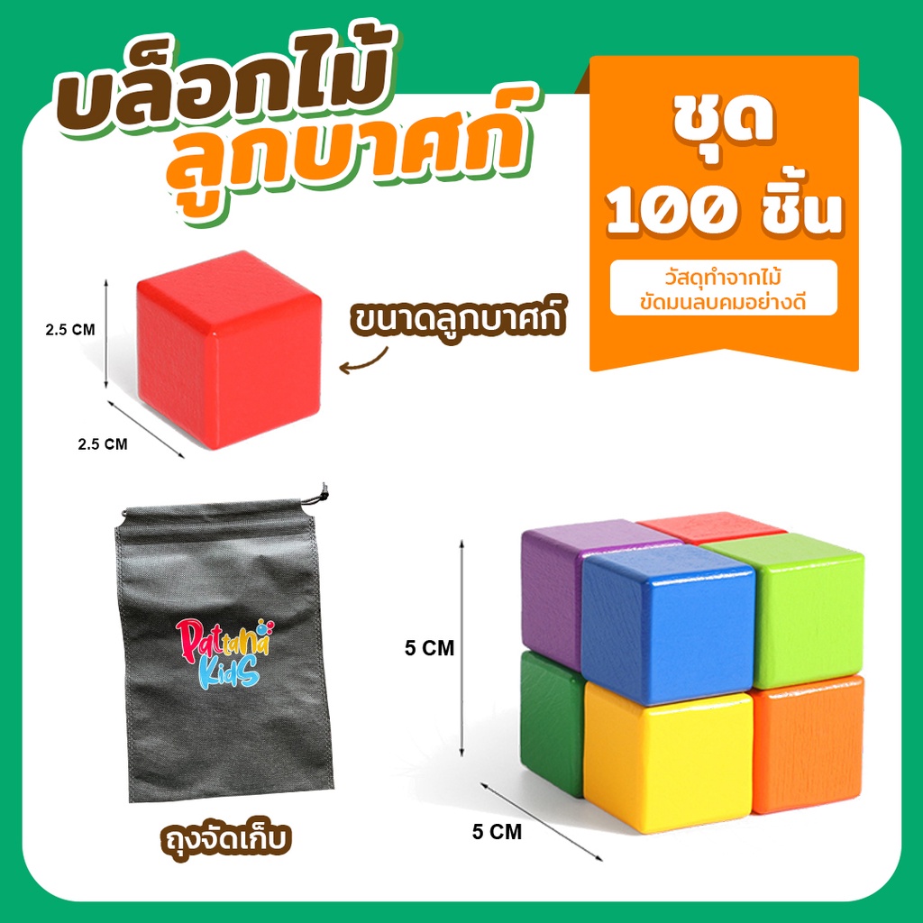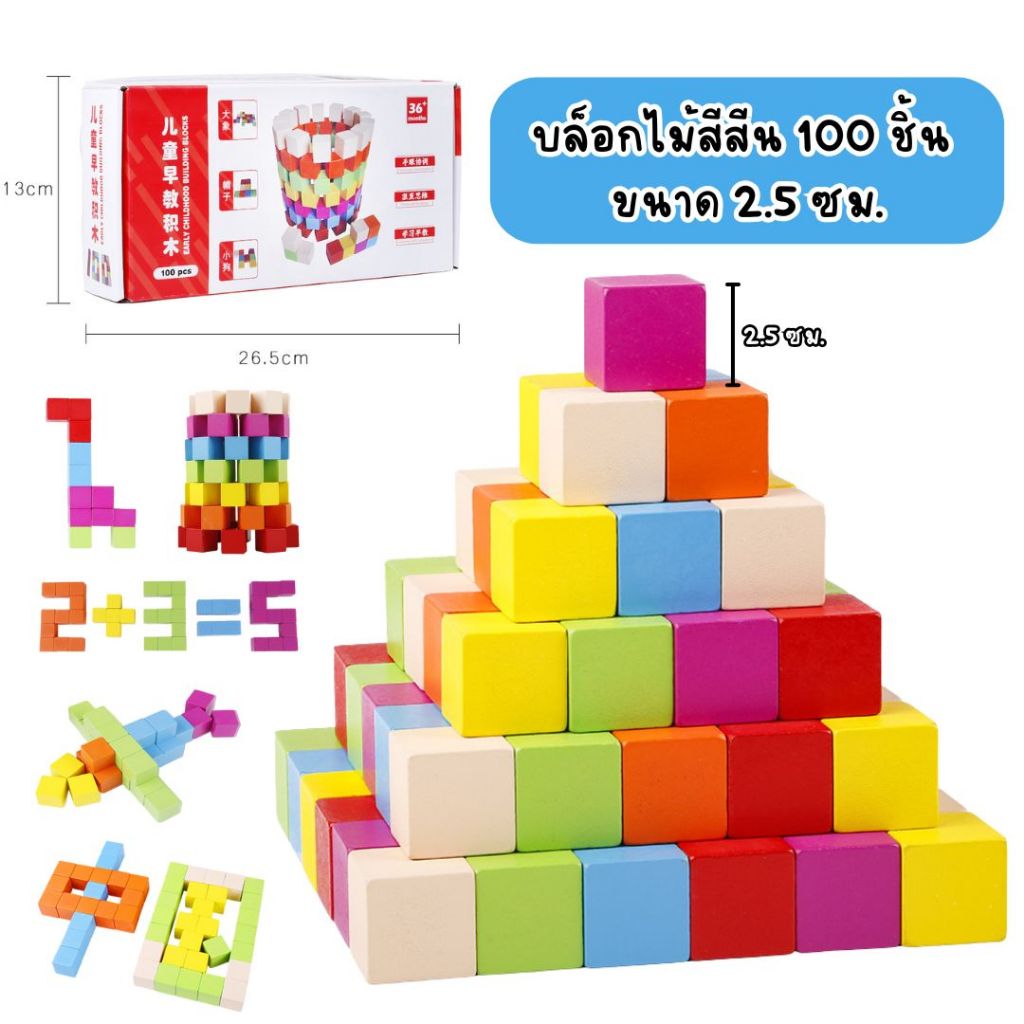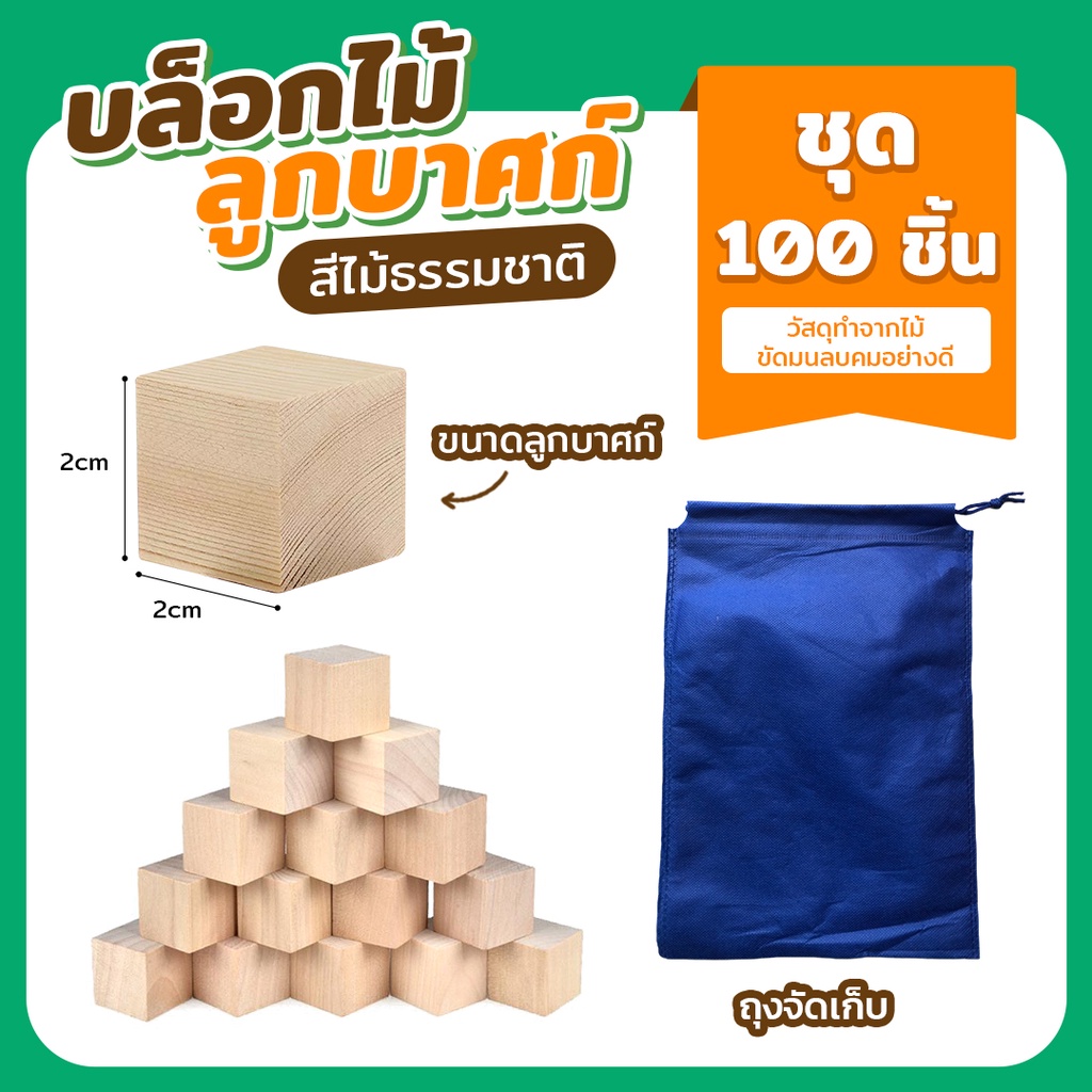 บล็อกไม้ 2 , 2.5 , 3 cm ร้านคัดพิเศษ บล็อคลูกบาศก์ สีสัน สีไม้ 20 50 และ100 ชิ้น ของเล่นบล็อกไม้ Cube Wooden ตัวต่อไม้