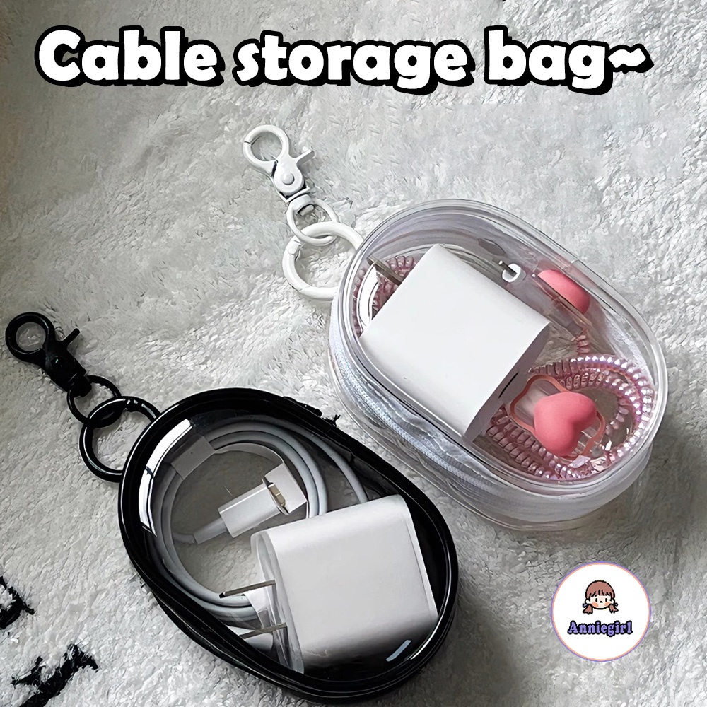 INS กล่องบรรจุสายข้อมูล กล่องเก็บสายเคเบิล หูฟัง ทรงกลม แบบใส พกกุญแจ ลิปสติก พาง่าย สําหรับเดินทาง กลางแจ้ง