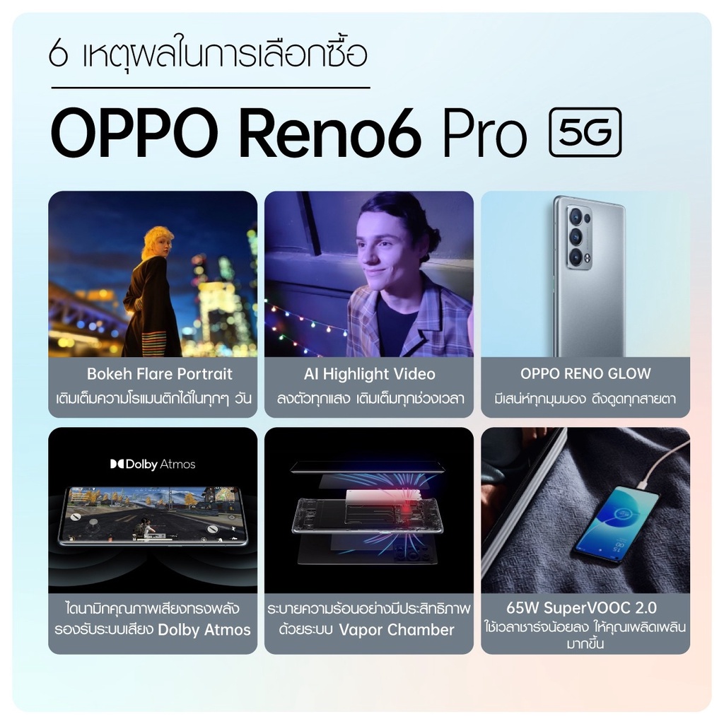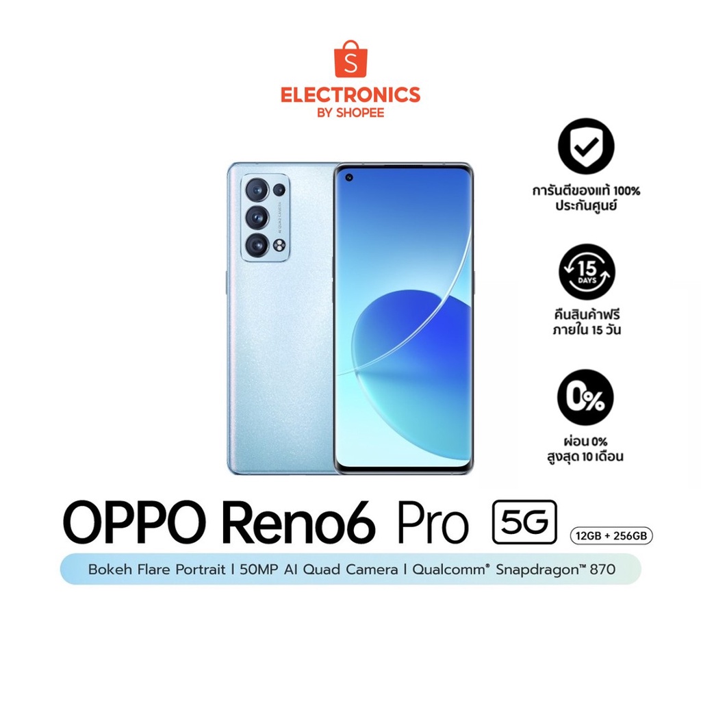 OPPO Reno6 Pro 5G (12+256GB)หน้าจอ6.55", ชิปเซ็ตQualcomm SM8250,4 ,500mAh สี Arctic Blue