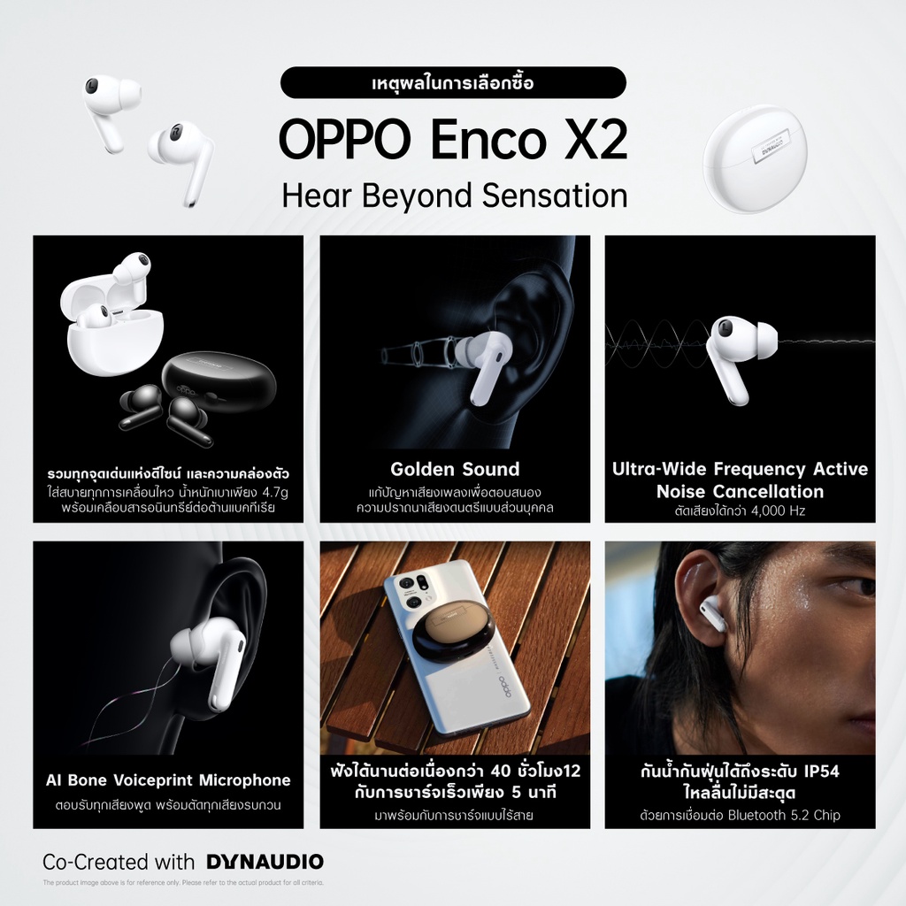New OPPO Enco X2 TWS ระบบเสียง Dolby Atmos ตัดเสียงรบกวน ชาร์จไวฟังเพลงต่อเนื่อง40ชม