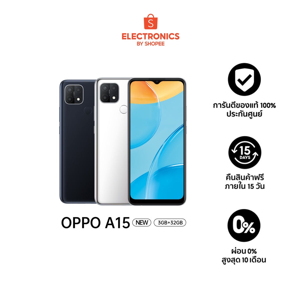 OPPO A15 New (3+32GB) หน้าจอ 6.52 นิ้ว, ชิปเซ็ต MTK MT6873V, แบต 4,100 mAh, กล้องด้านหน้า 8MP